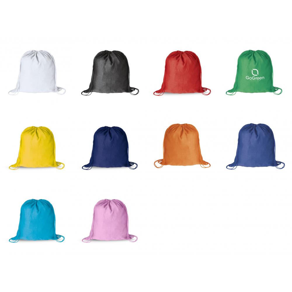 Сумка на шнурках из 100% хлопчатобумажной ткани с мягкой отделкой и яркими тонами. С самозакрывающимися завязками соответствующего цвета. 100% Хлопок