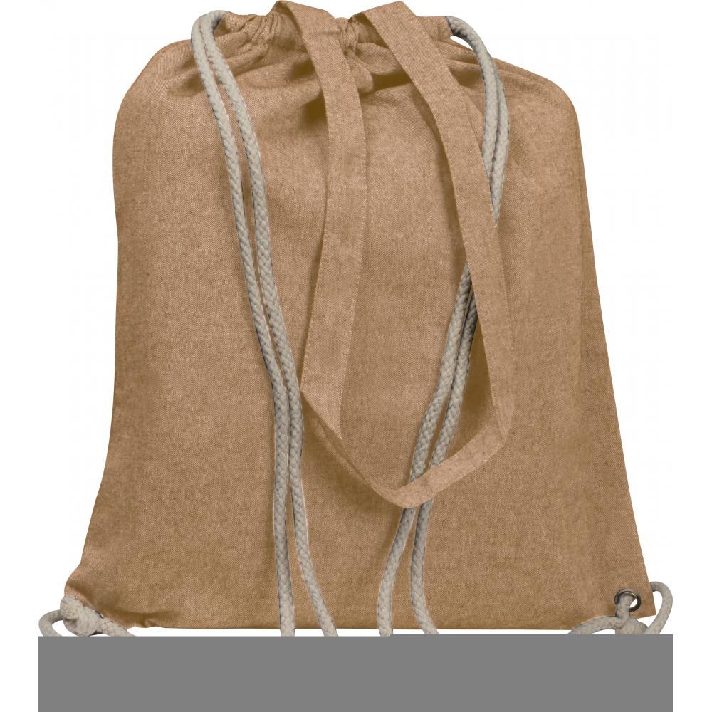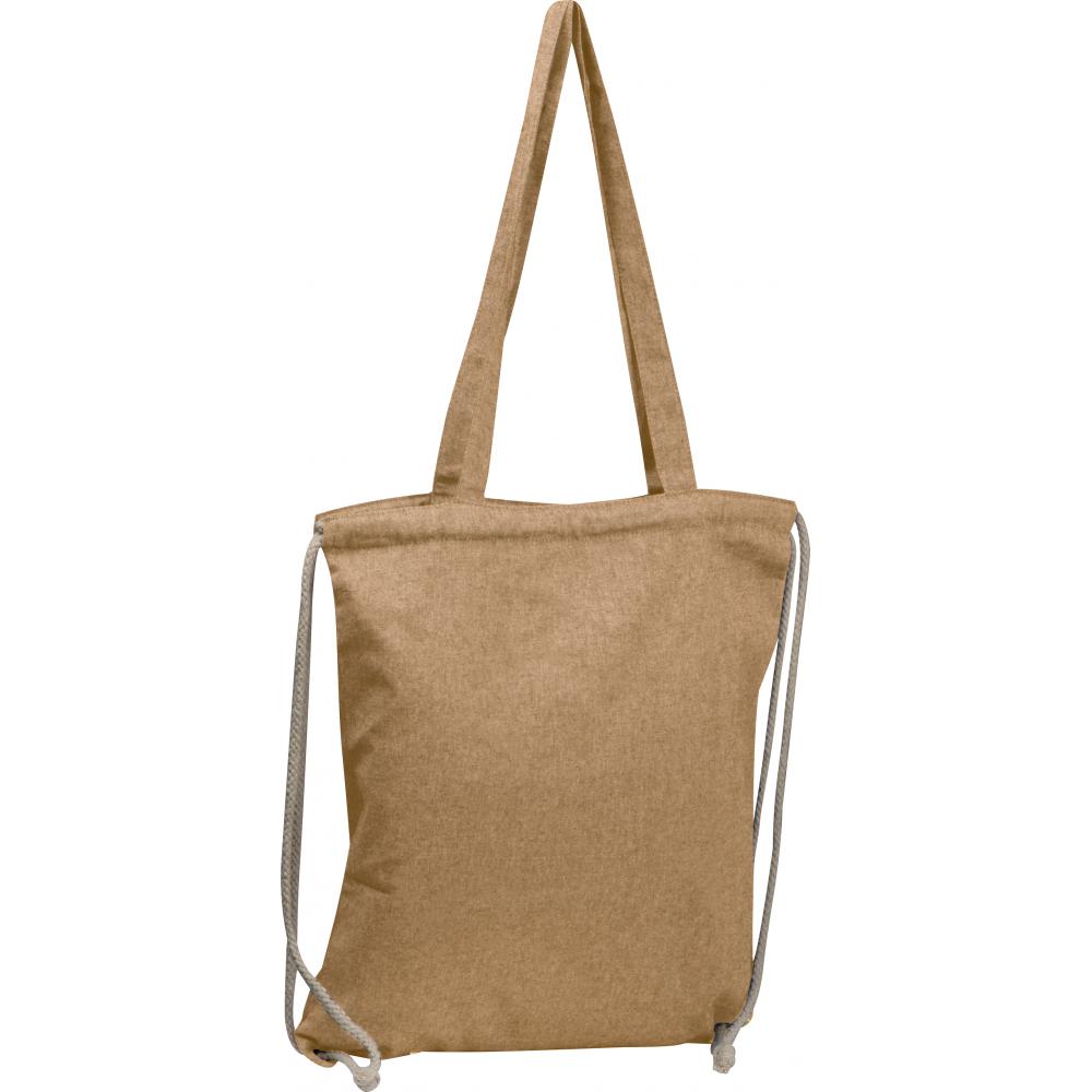 Сумка из переработанного хлопка с сертификатом Oeko-Tex® STANDARD 100. Можно ее носить на двух длинных ручках или на шнурках. Плотность хлопка 140 г/м².