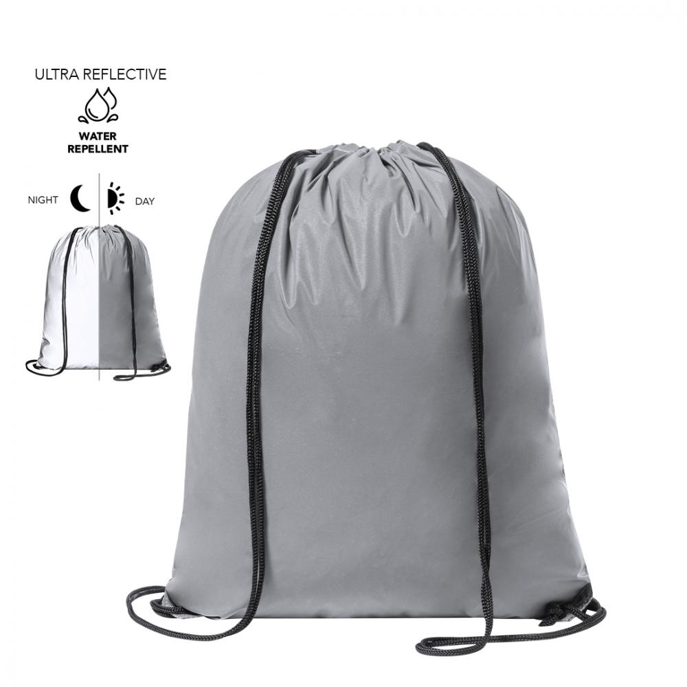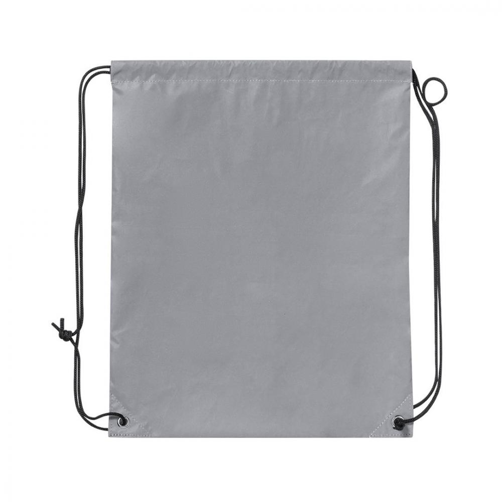 Сумка на шнурках из мягкого полиэстера 210T. Изготовлен из ткани с высокой отражающей способностью, основанной на принципе обратного отражения света, свойстве ночной видимости, которое заключается в преломлении света обратно к его источнику происхождения. С черными самозакрывающимися завязками и металлическими проушинами. Устойчив к весу до 7 кг и водонепроницаем. Отражающий Полиэстер 210T