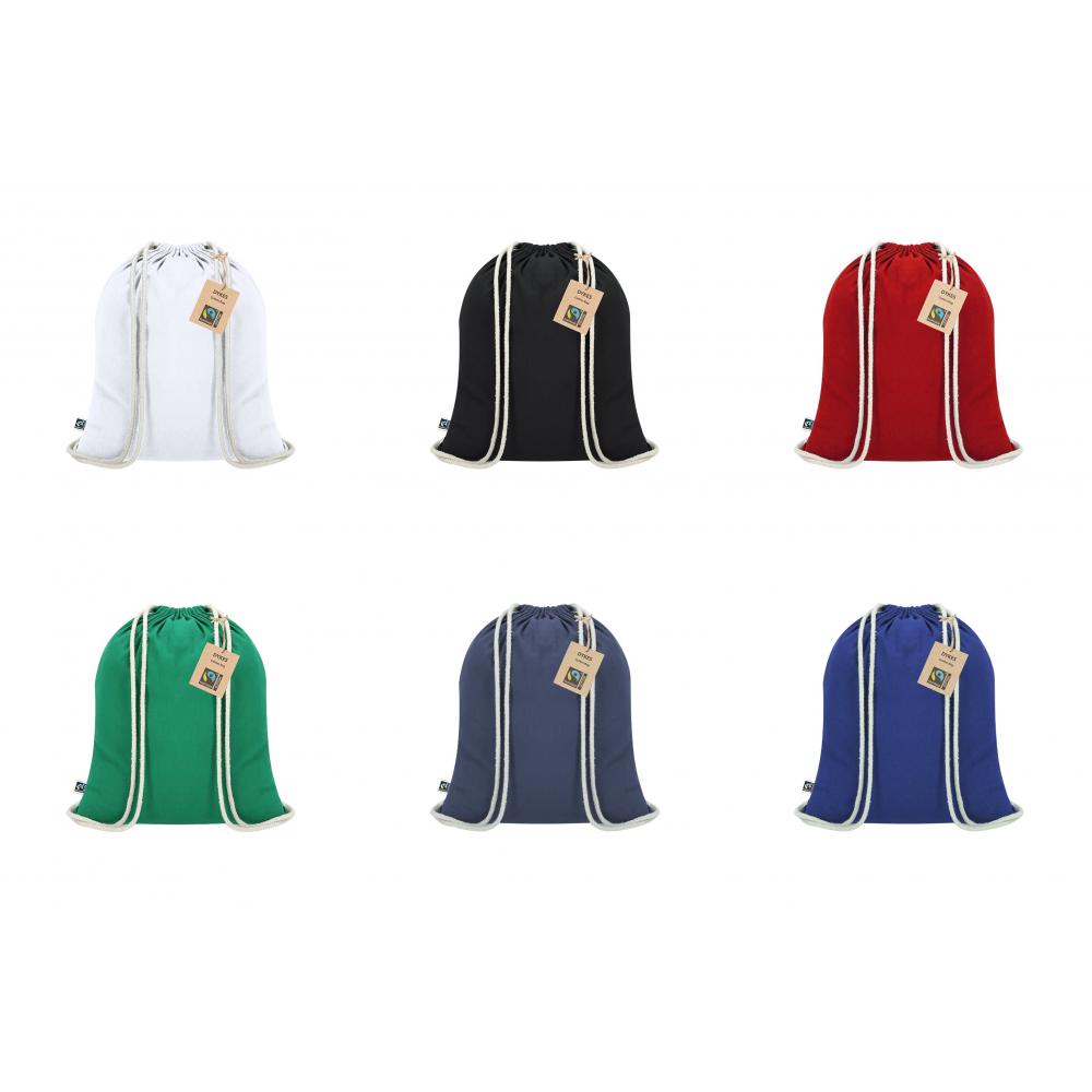 Рюкзак с завязками из хлопка плотностью 140 г/м2. С сертификатом Fairtrade, справедливой и альтернативной торговой системой, которая способствует развитию народов и борьбе с бедностью. Завершенный шов, хлопковые шнуры, выдерживает вес до 9 кг. Включает в себя этикетку Fairtrade и характерную бирку из переработанного картона.