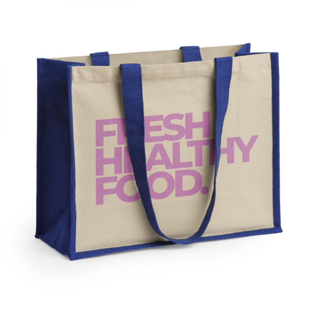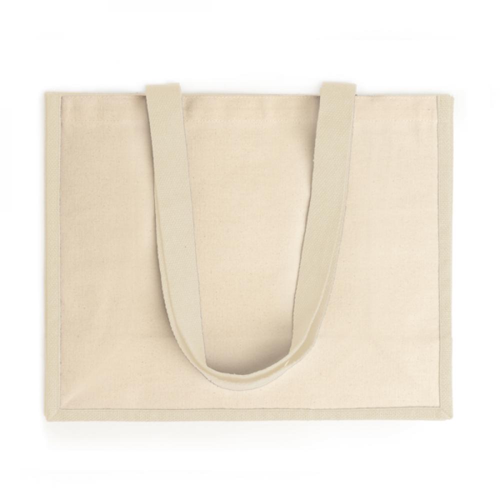 Сумка из ламинированного джута с длинными ручками и обеими сторонами из хлопка. Идеально подходит для маркировки.