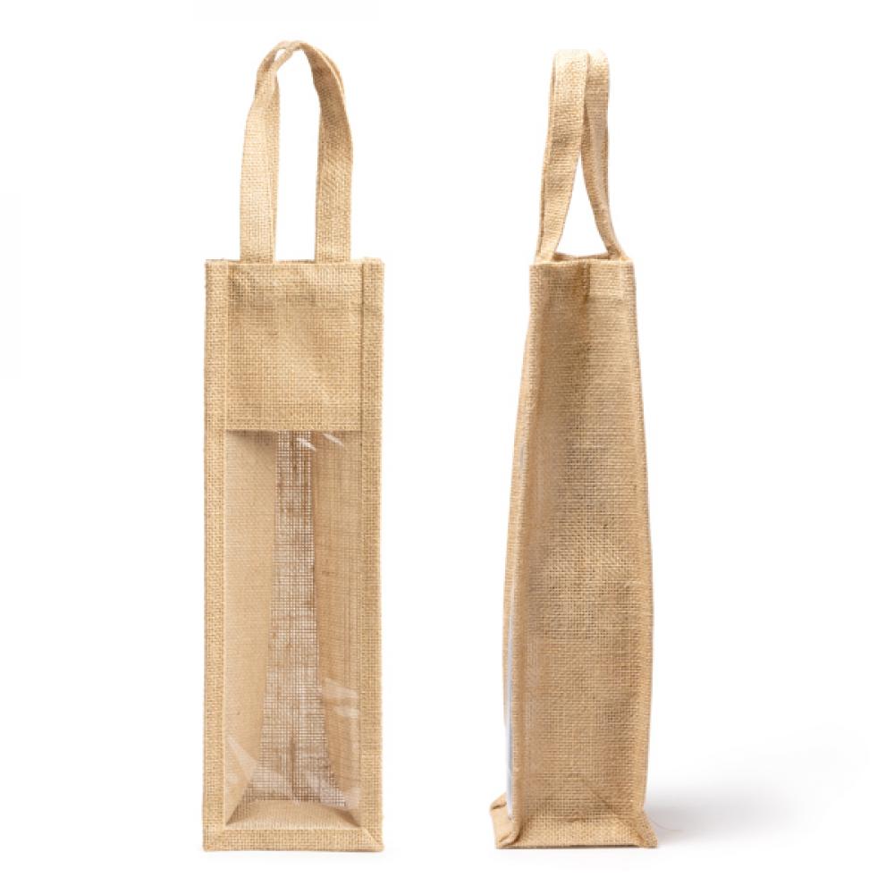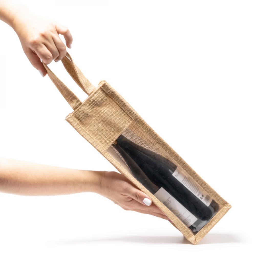 Ламинированная сумка из джута с окном. Усиленные ручки. Идеально подходит для бутылок.