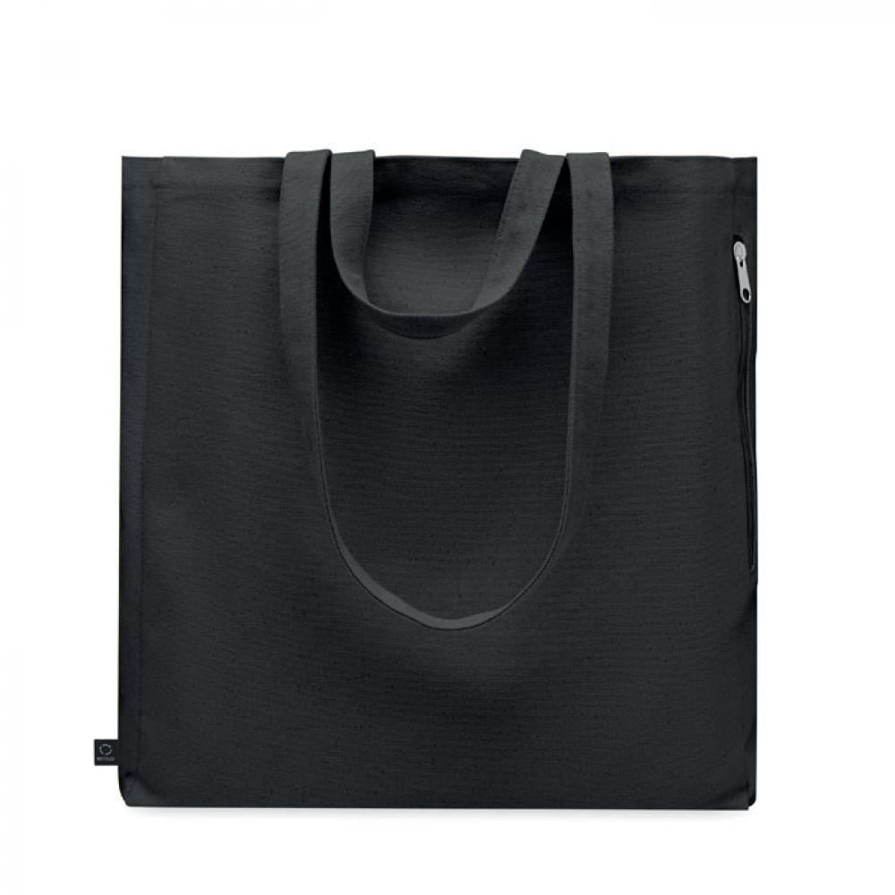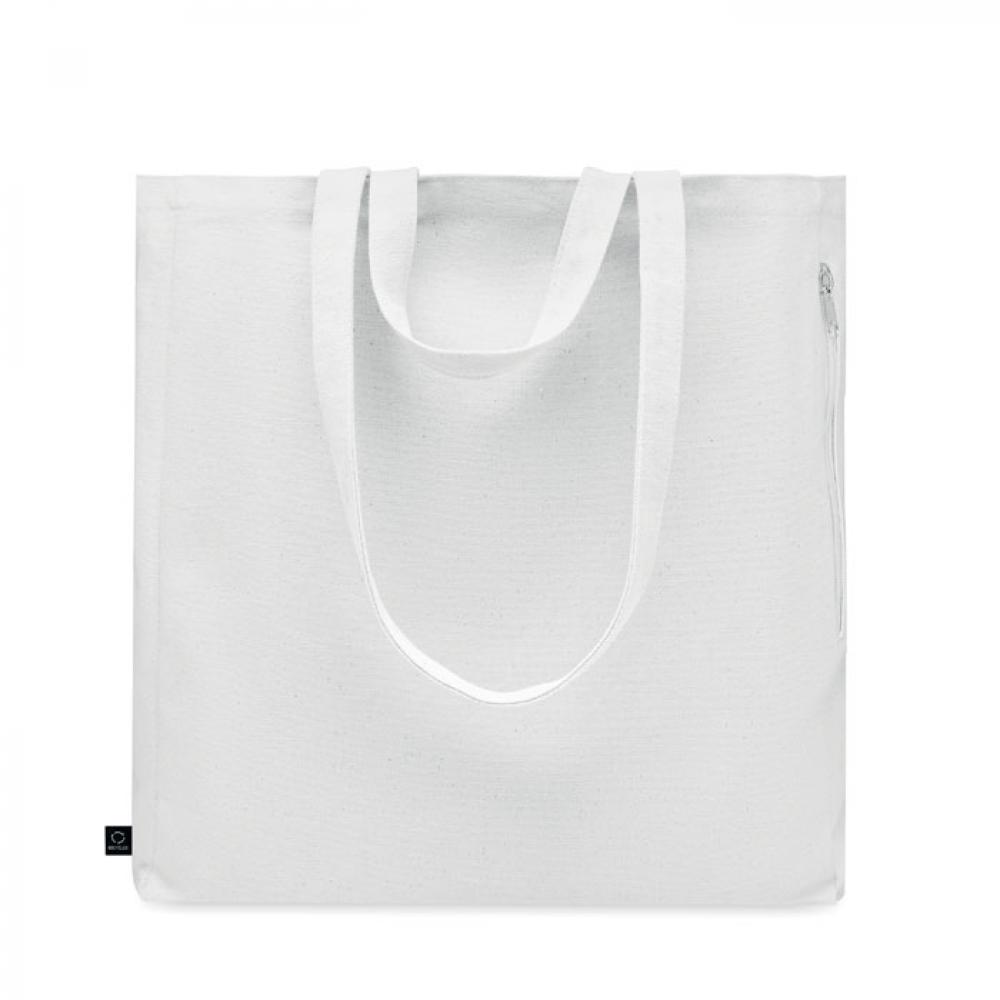 Сумка для пляжа или покупок из переработанного хлопка 70% и 30% переработанного полиэстера с короткими и длинными ручками. Имеет боковой карман на молнии. 380 гр/м².