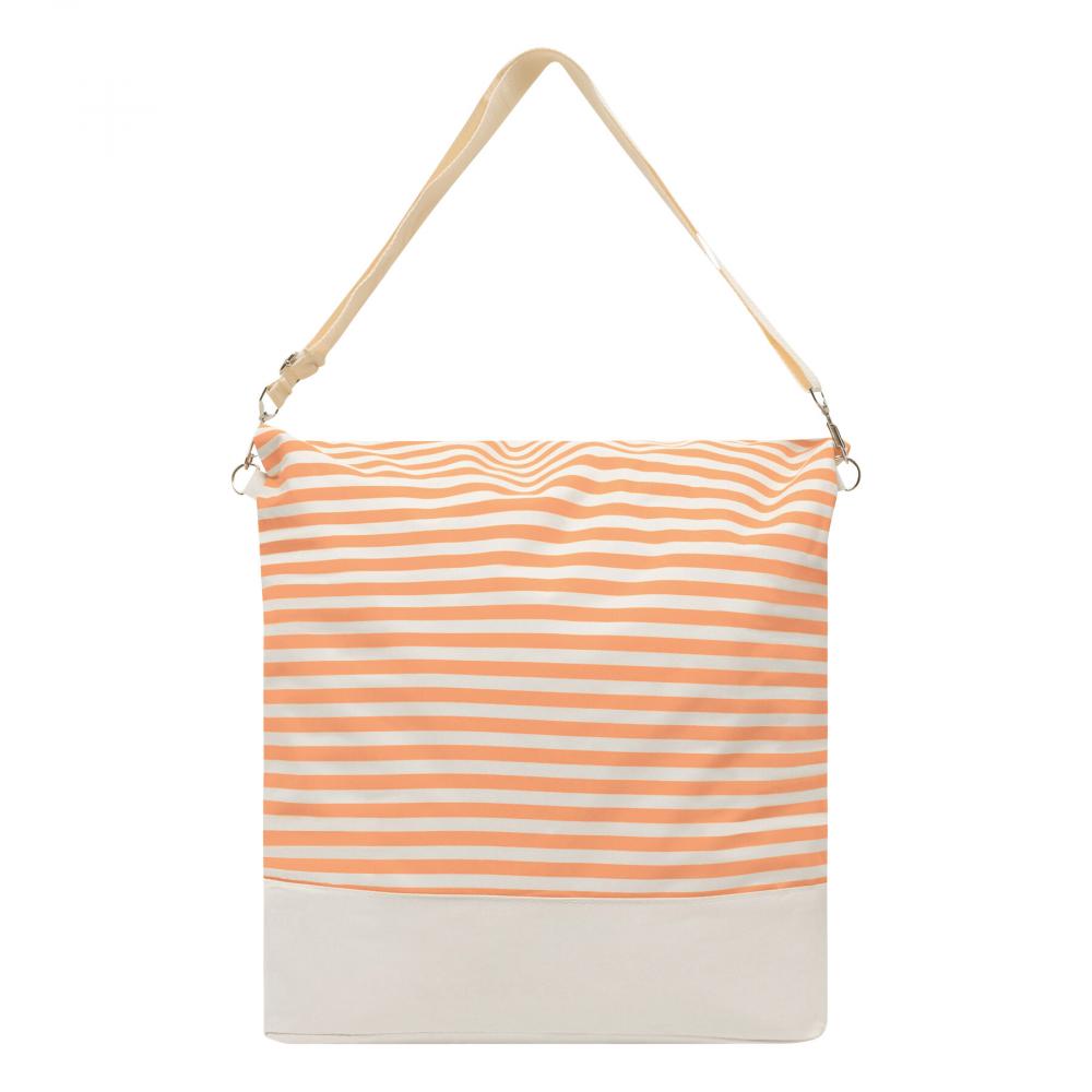 Пляжная сумка с вместительным главным отделением на молнии, 2 удобными ручками и регулируемым плечевым ремнем. Объем сумки можно уменьшить на 25%, сложив верхнюю часть и пристегнув ее с помощью магнитной защелки.