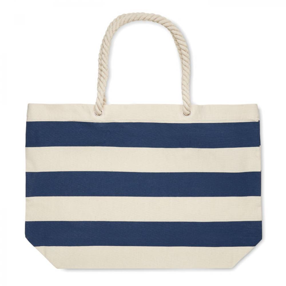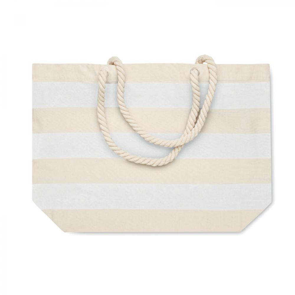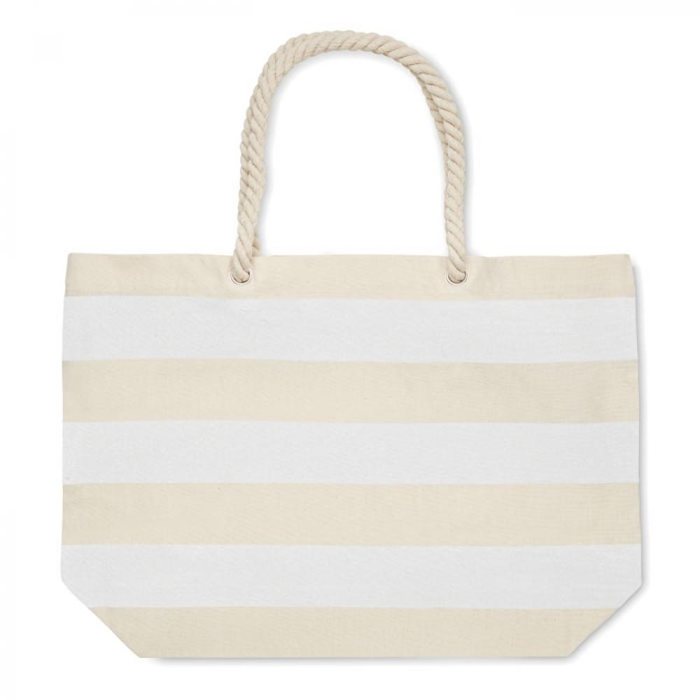 Полосатая пляжная сумка или сумка для покупок из хлопка с ручкой. 220 гр/м².