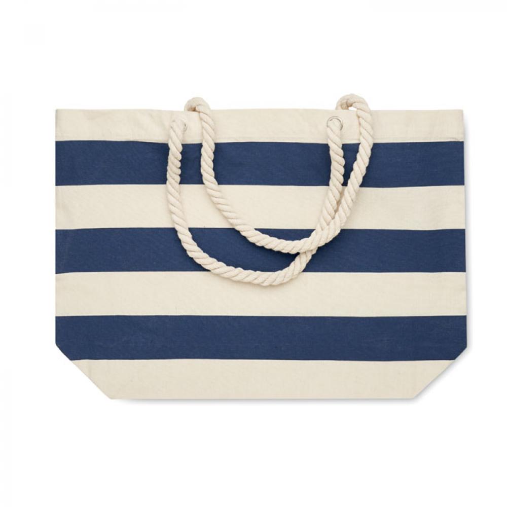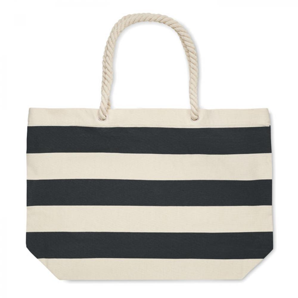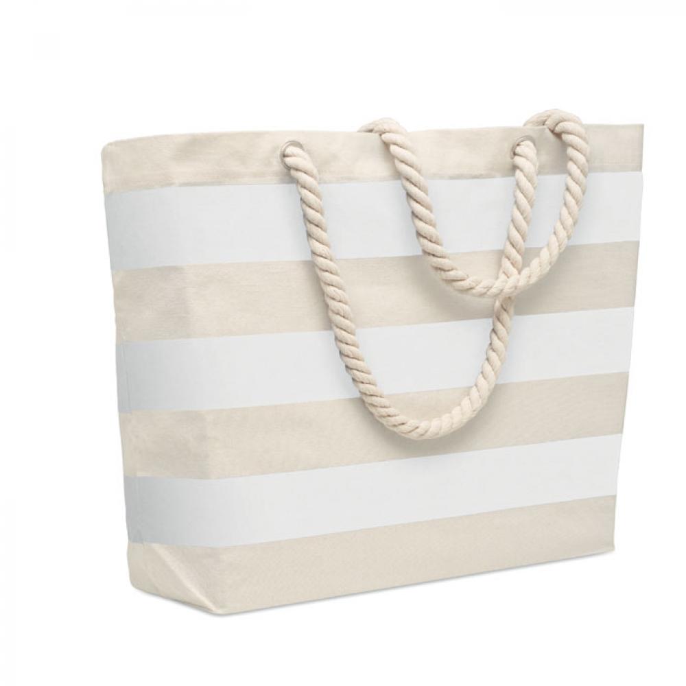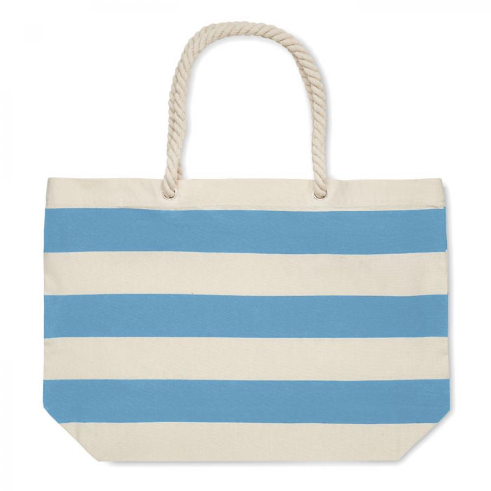 Полосатая пляжная сумка или сумка для покупок из хлопка с ручкой. 220 гр/м².