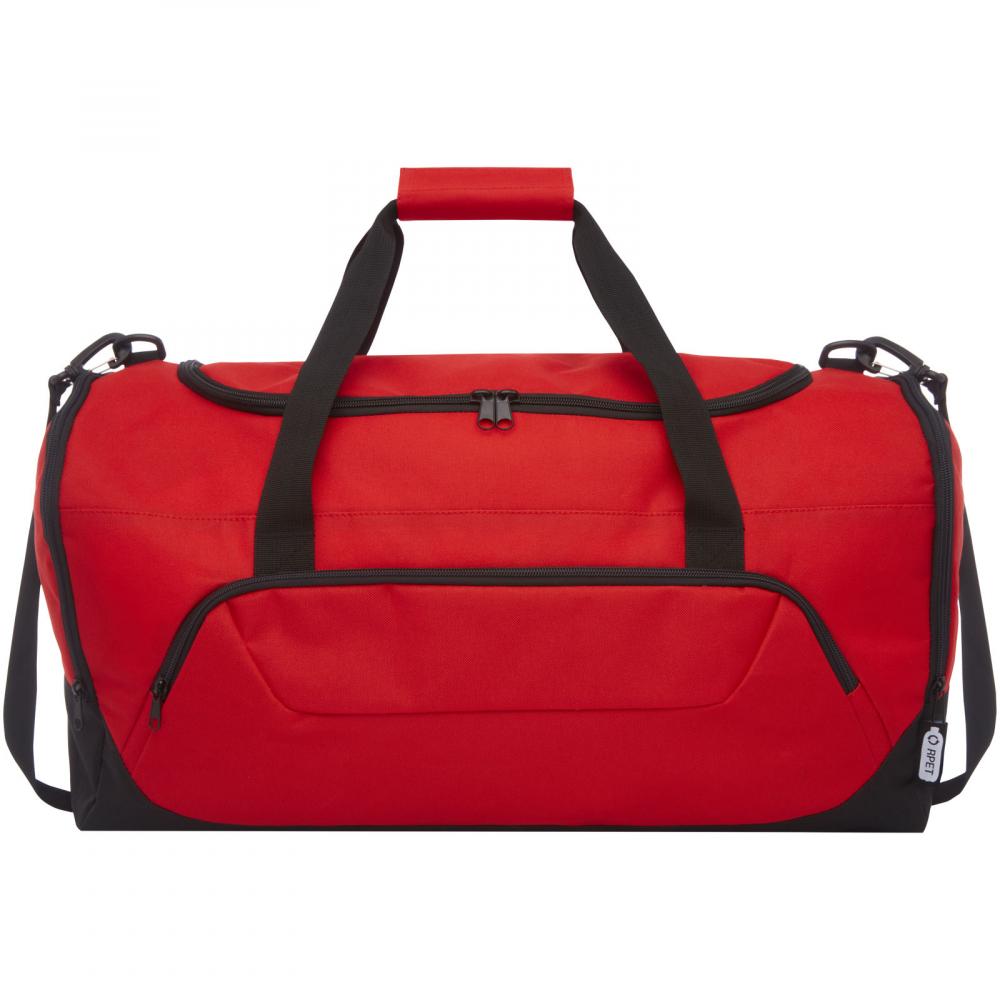 Прочный спортивная сумка, изготовленный на 100% из сертифицированного по стандарту GRS переработанного пластика, что способствует сокращению пластиковых отходов. Имеет большое основное отделение и передний карман на молнии, а также мягкий плечевой ремень и мягкие ручки. Для изготовления этой сумки перерабатывается примерно 27 бутылок.