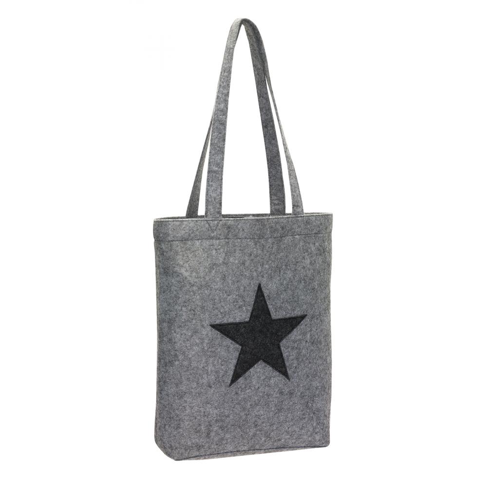 Фетровая сумка-шоппер STAR DUST: застежка-липучка и 2 длинных плечевых ремня, симпатичная звезда спереди.