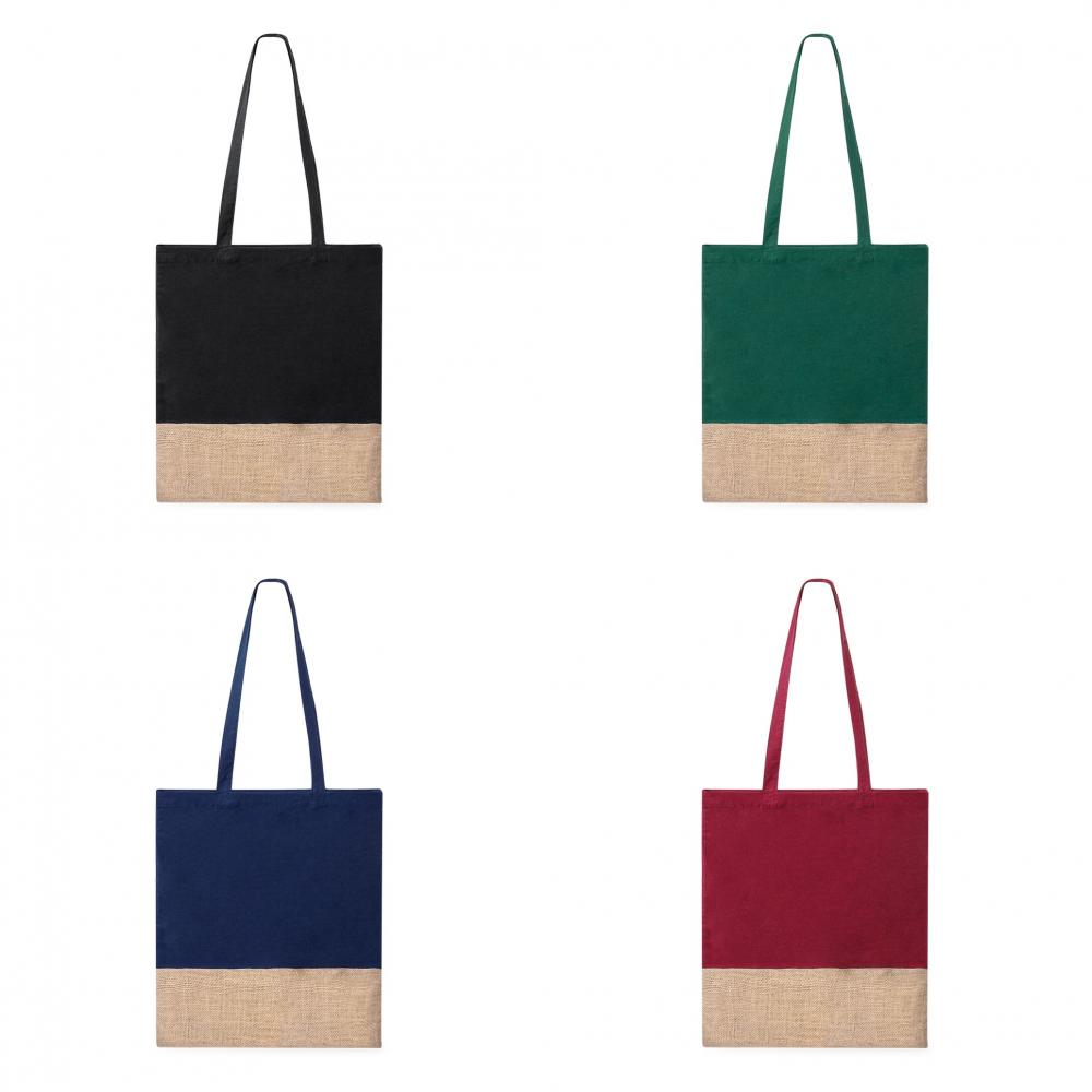 Характеристики Сумка-тоут из 100% хлопкового материала плотностью 120 г/м2 в сочетании с джутом. Удобные плоские ручки и доступна в различных цветах. Выдерживает вес до 8 кг. 100% Хлопок 120 г/м2/ Джут