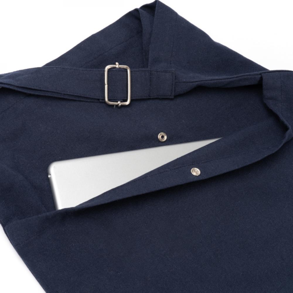 Сумка из переработанного хлопка плотностью 240 г/м² с передним карманом, застежкой на пуговицу и внутренним карманом. Регулируемая ручка.