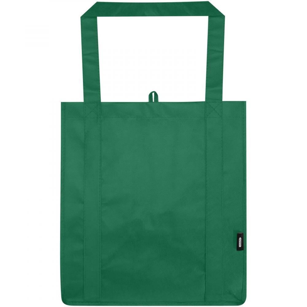 Изготовленная из прочного и устойчивого к разрывам нетканого материала RPET, сертифицированная по стандарту GRS сумка Liberty имеет укреплённое дно, что делает её универсальной и надёжной. Сумка оснащена большим основным отделением и ручками длиной 25 см. Объём: 29 литров. Выдерживает нагрузку до 12 кг.