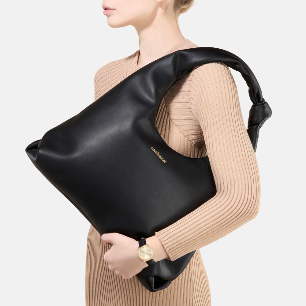 Сумка "Violette" в черном цвете — это вечное дополнение к любому гардеробу, сочетающее минималистичный дизайн с практичной элегантностью. Изготовленная из гладкой матовой веганской кожи (PU) с мягким на ощупь покрытием, сумка имеет широкую, объемную форму, которая обеспечивает достаточно места для необходимых вещей, сохраняя при этом изысканный вид. Бесшовно интегрированная ручка с узлом служит как уникальным элементом дизайна, так и добавляет комфорт при ношении. Черный цвет подчеркивает ее универсальность, позволяя легко сочетать как с повседневными, так и с формальными образами. Разработанная для плавного перехода от дневного к вечернему стилю, сумка украшена роскошной золотой пластиной с буквой "C" на задней стороне, что придает этому тщательно созданному аксессуару утонченную элегантность.