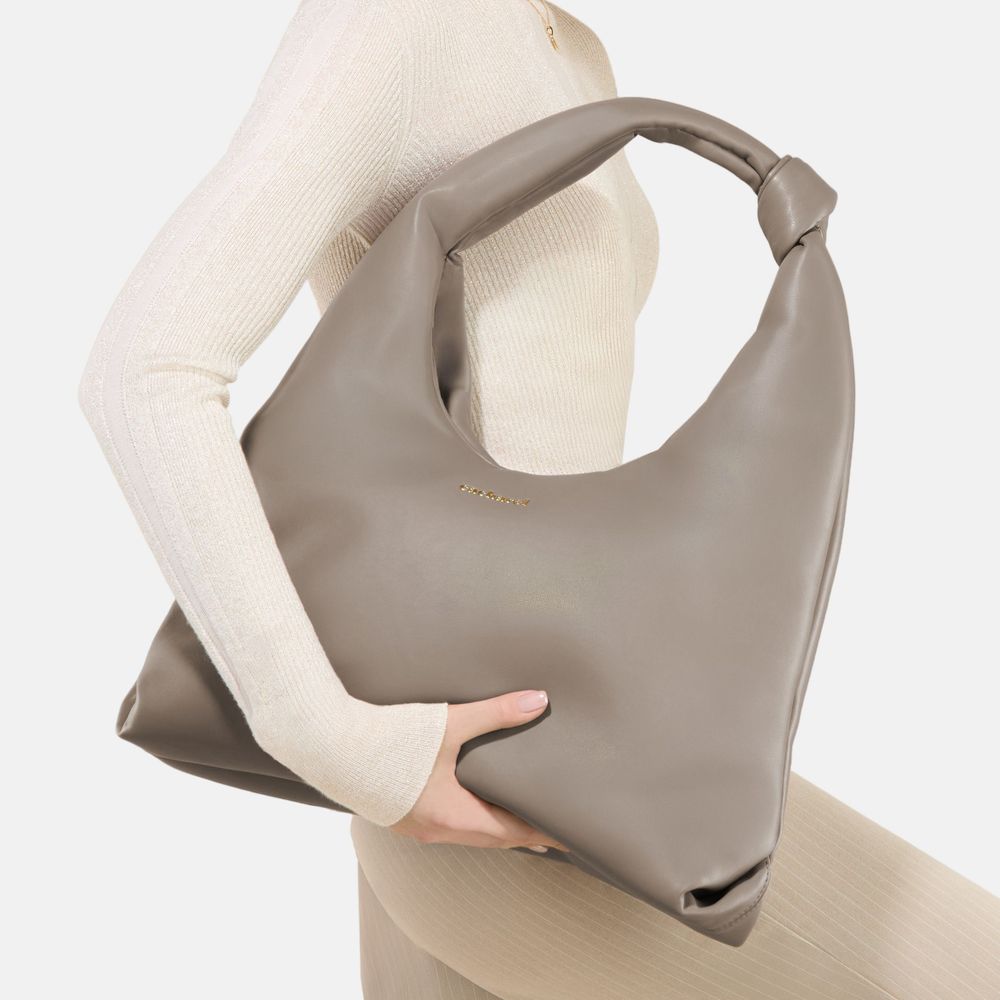 Сумка "Violette" в цвете таупе — это универсальный и элегантный аксессуар, который сочетает в себе современный комфорт и стильный шик. Матовая текстура из веганской кожи (PU) и мягкое на ощупь покрытие подчеркивают расслабленный, но изысканный вид широкой, объемной формы, которая предоставляет достаточно места для необходимых вещей. Узелковая ручка гармонично вписывается в дизайн, добавляя как визуальную изюминку, так и комфорт для легкого ношения. Нейтральный оттенок таупе делает ее идеальным выбором для носки с утра до вечера, легко сочетаясь с разнообразными нарядами. Завершает образ роскошная золотая пластина с буквой "C" на задней стороне, придавая сумке сдержанную элегантность и делая ее воплощением утонченной практичности и стиля.