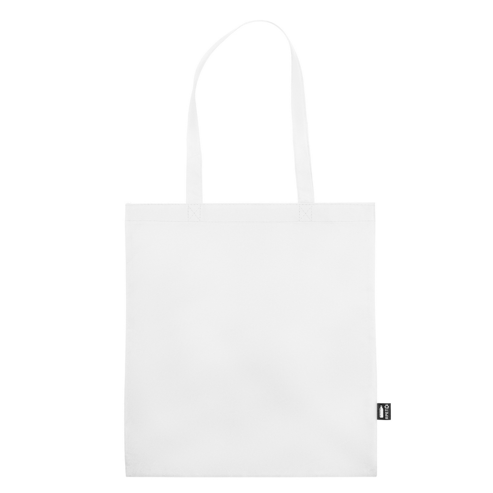 Сумка для покупок изготовлена из RPET, имеет длинные ручки для ношения сумки на плече, включает значок RPET на ярлыке, изделие изготовлено из нетканого RPET 75 г/м2.