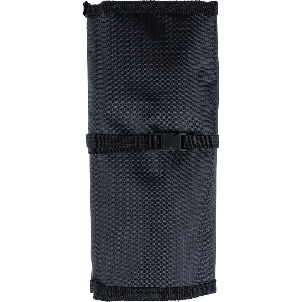 Сумка для хранения кабелей и зарядных устройств с возможностью скручивания, пряжка для надежной фиксации во время путешествий, различные карманы внутри, изделие из полиэстера.