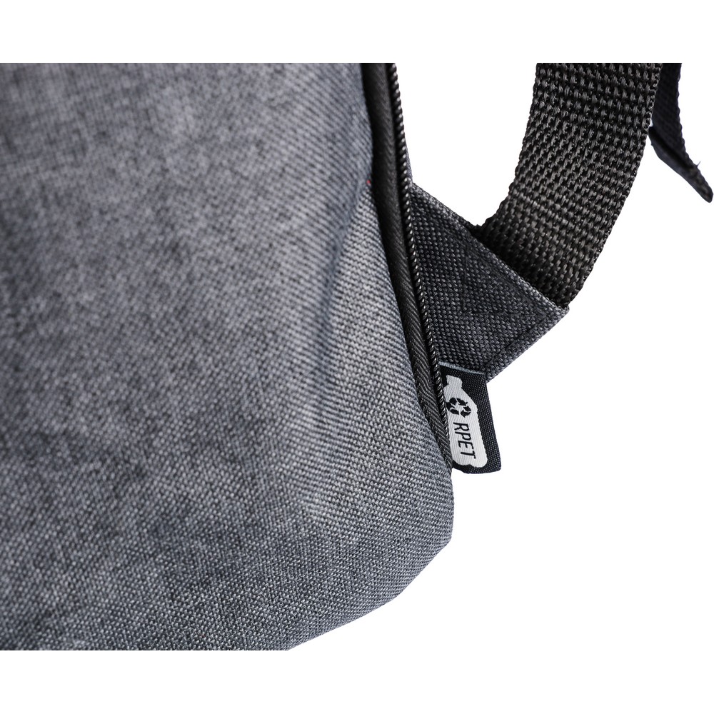 Рюкзак для ноутбука 15" с подкладкой, небольшим передним карманом на молнии, отделением на молнии сбоку, обычным боковым карманом, большим отделением с магнитным замком с карманом для ноутбука, кнопки по бокам позволяют закрыть рюкзак, когда он не полностью заполнен, регулируемые лямки, верхняя ручка для подвешивания на вешалку, на бирке есть значок RPET, внутри кармана на молнии спереди есть кольцо и карабин для крепления ключей и защиты от кражи, изделие из полиэстерового холста, полиэстера и ПП.