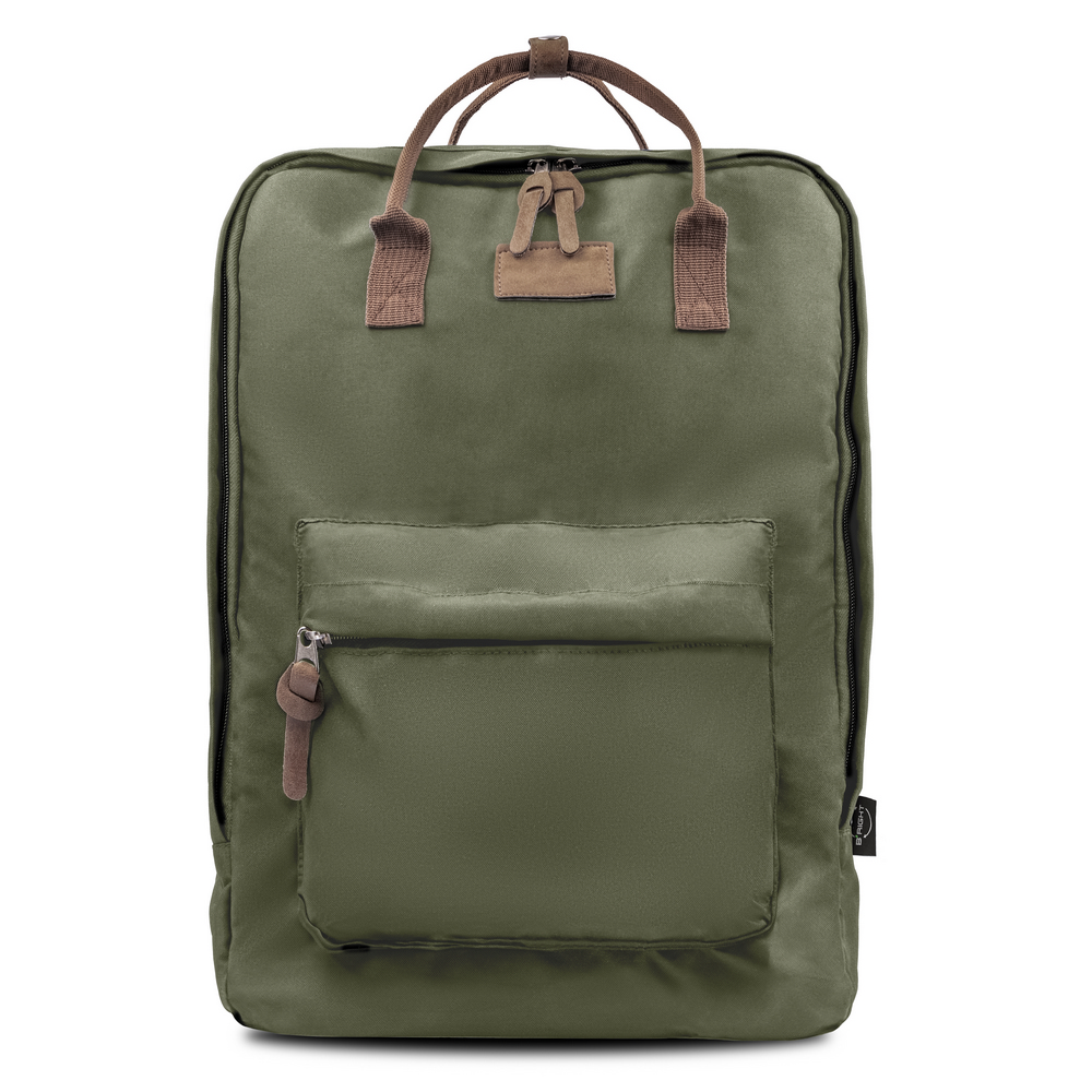 Рюкзак для ноутбука B'RIGHT 15,6" оснащен 2 застежками-молниями основных отделов, передним основным отделом с несколькими внутренними карманами, включая 1 боковой карман, задним основным отделом с отделением для ноутбука, внутренняя часть обоих основных отделов обита тканью, соответствующей цвету ручек, 1 передний карман на молнии, 2 ручки, которые можно соединить с помощью застежки-кнопки, мягкая спинка повышает комфорт использования, а регулируемые лямки позволяют регулировать их длину в соответствии с индивидуальными предпочтениями. Изделие изготовлено из RPET, соответствует сертификату GRS (Глобальный стандарт по переработке).