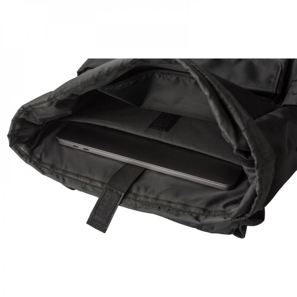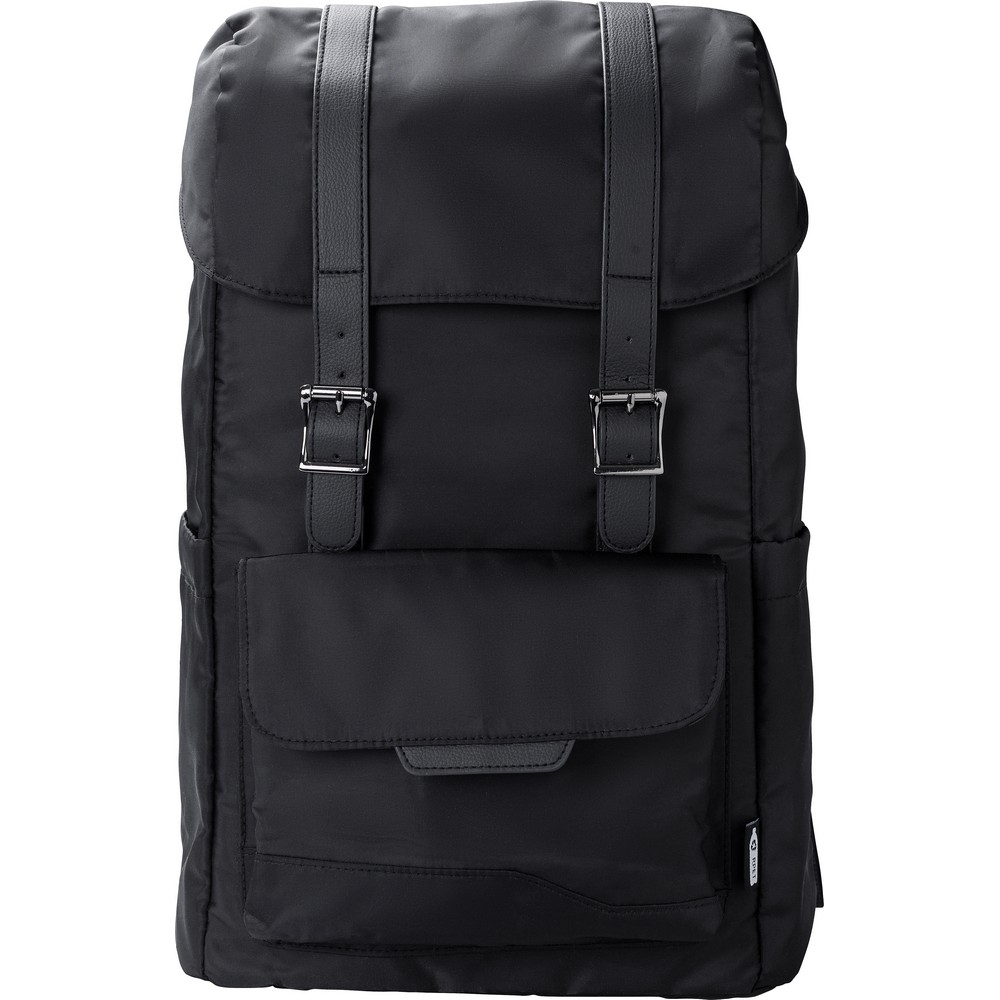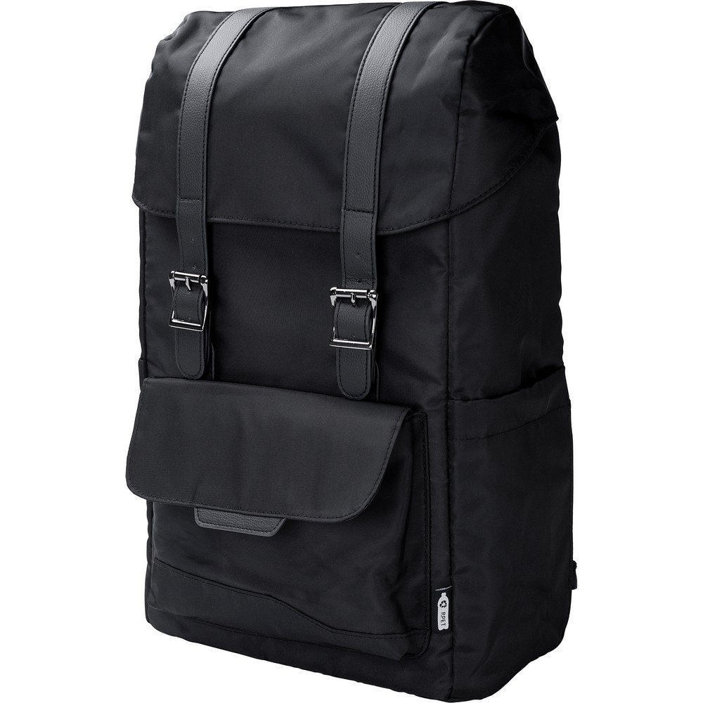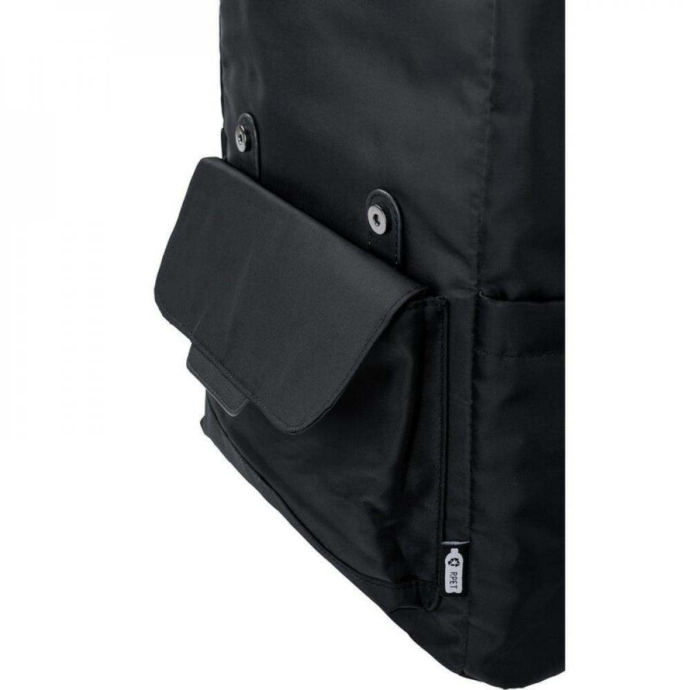 Рюкзак с клапаном, изготовленный из RPET, два боковых кармана, передний карман закрывается магнитом, внутренняя часть закрывается шнуром, карман для ноутбука 15", водонепроницаемое покрытие на сумке.