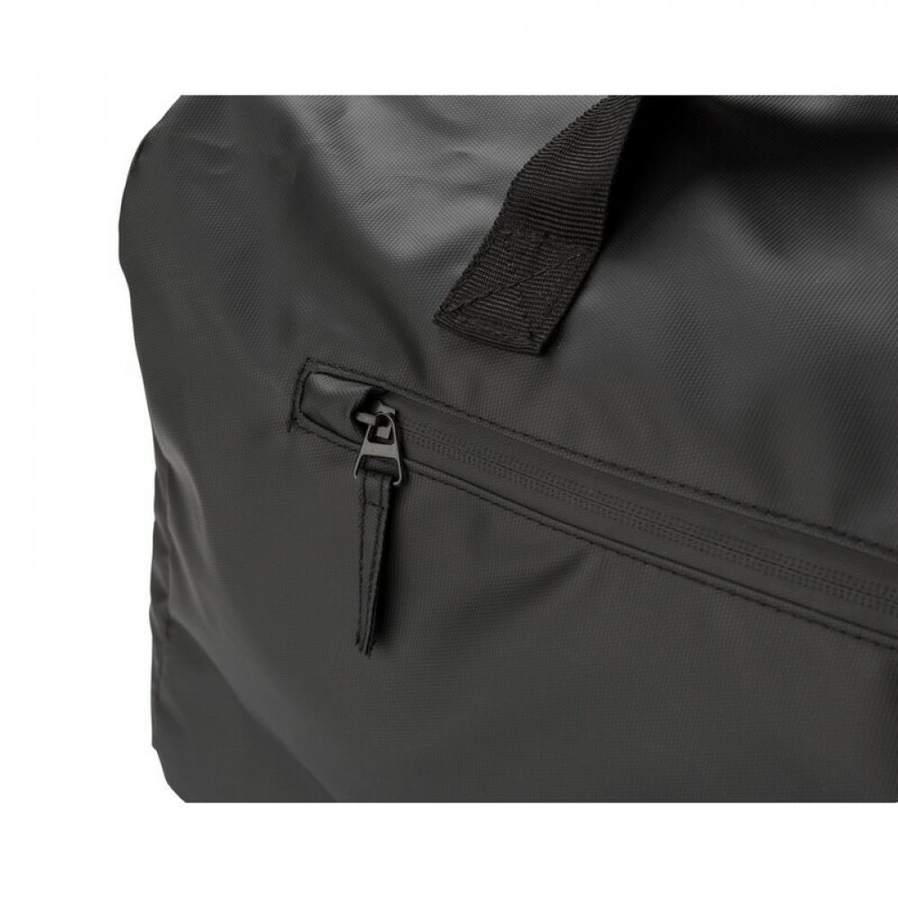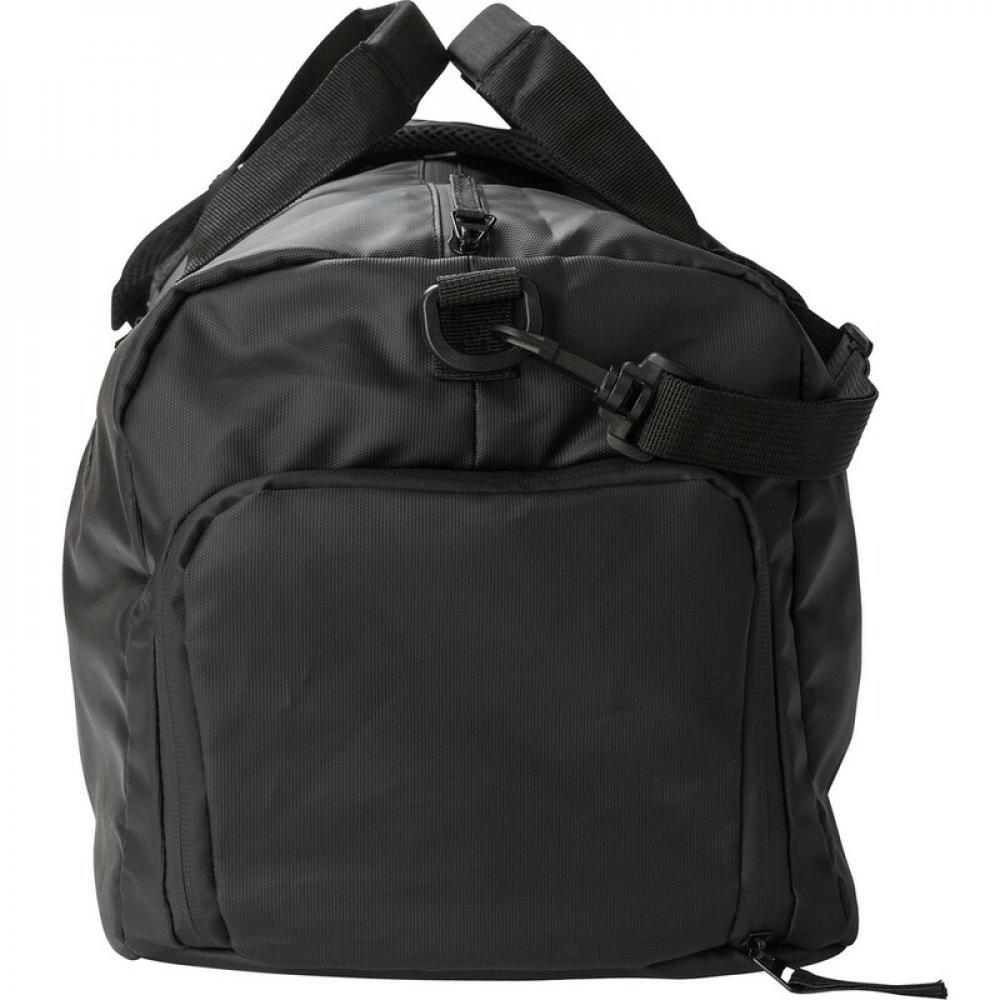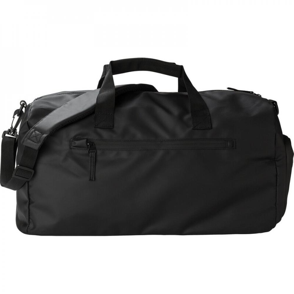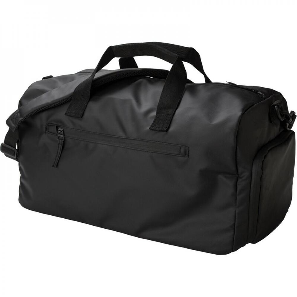 Водонепроницаемая сумка, изготовленная из полиэстера, с усиленным дном, карманами на молнии, карманом для обуви, плечевым ремнем и ручками.