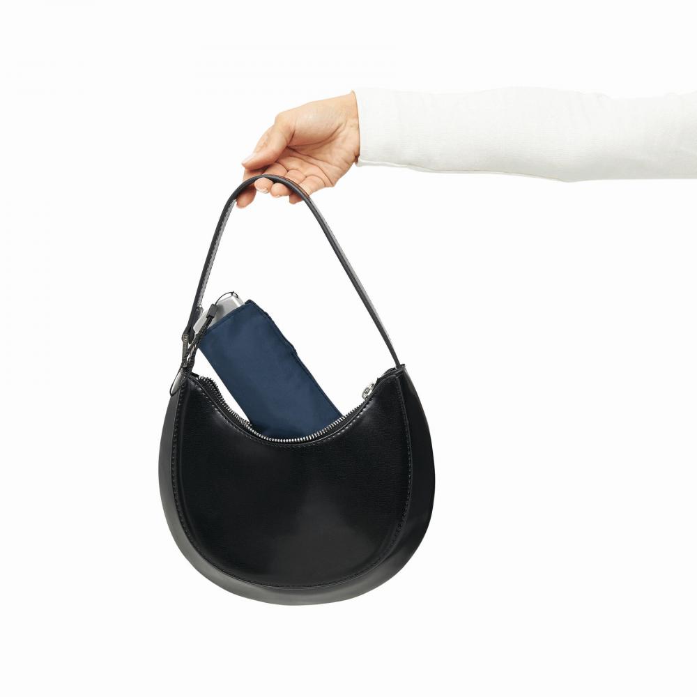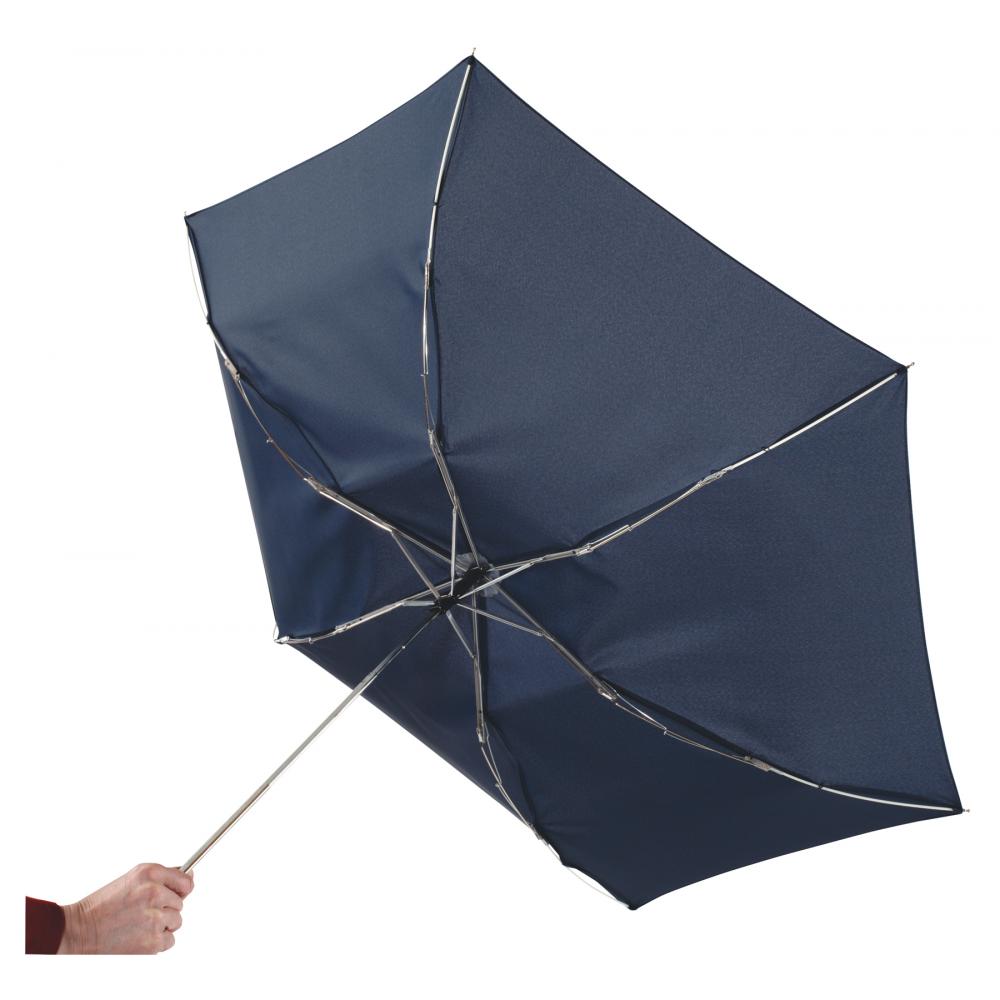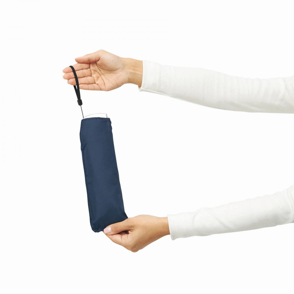 Сверхтонкий карманный мини-зонт FLAT, легкий ветрозащитный каркас весом 164 г, трехсекционный алюминиевый стержень, с алюминиевыми ребрами, концами из стекловолокна и металлическими наконечниками, ручка серебристого цвета с навесом из полиэстера.