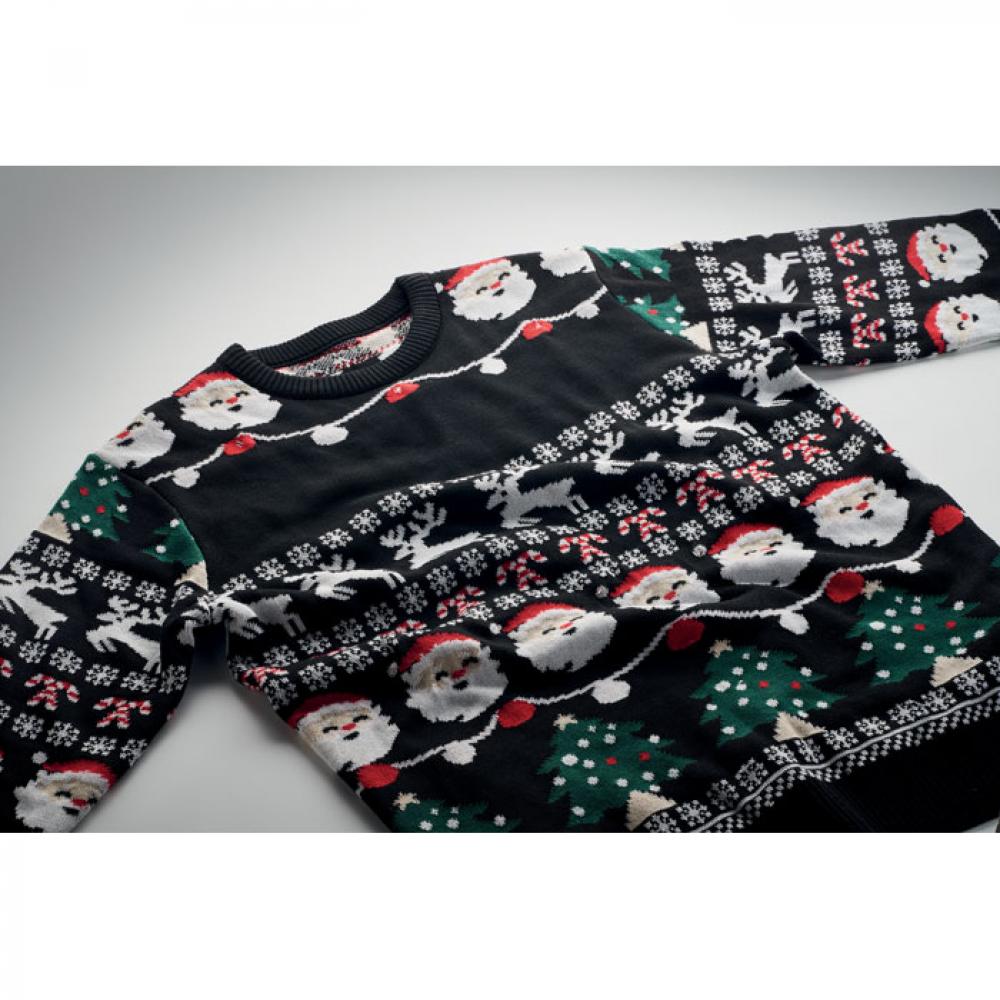 Свитер из акрила с 10 светодиодными лампочками. Размер: S/M. Удивите коллег на работе или родственников на семейном рождественском ужине этим праздничным свитером. Съемный карман для батареек.