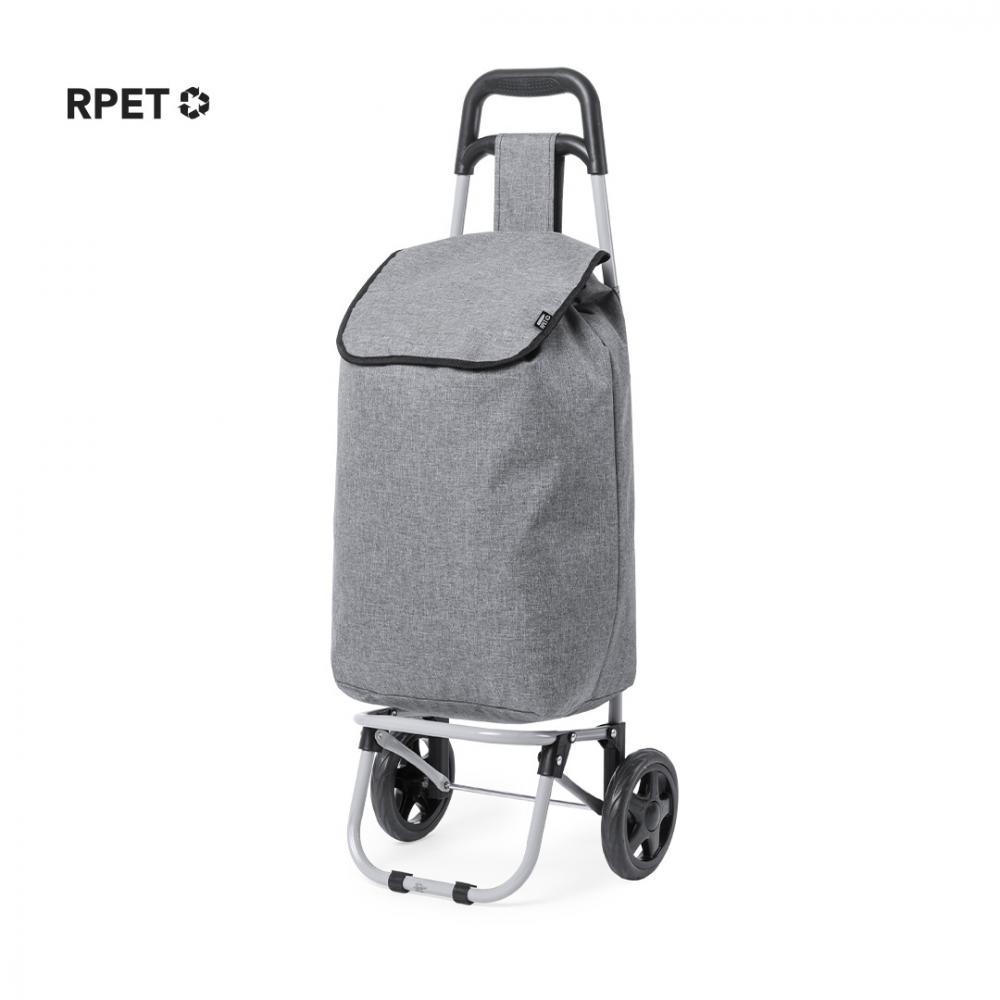 Складная тележка для покупок. Изготовлена из прочного полиэстера 600D RPET, изготовленного из переработанного пластика, чтобы способствовать повторному использованию пластиковых отходов и, таким образом, способствовать экологичности планеты. С усиленной ручкой, металлическим корпусом в форме трубы, задним карманом на молнии и резиновыми защитными накладками. Высококачественные усиленные колеса с эмблемой RPET на клапане.
