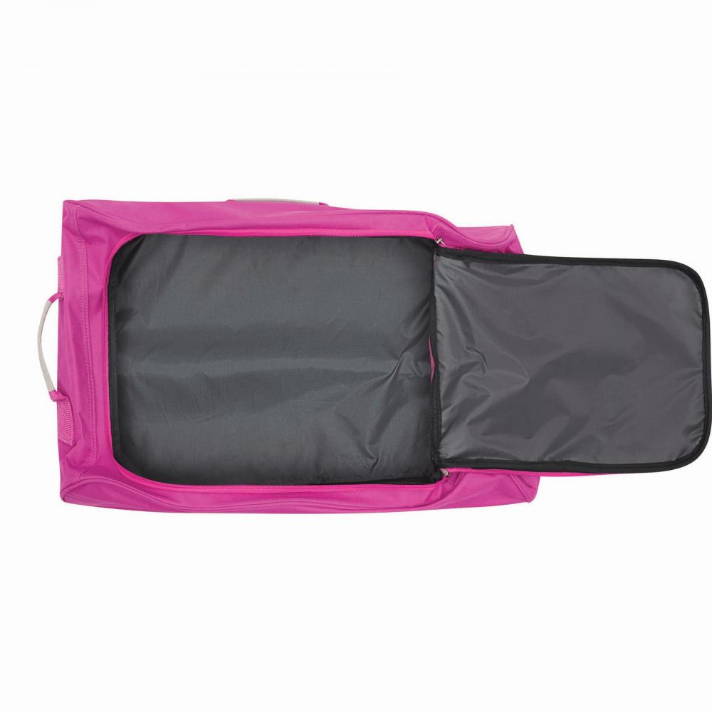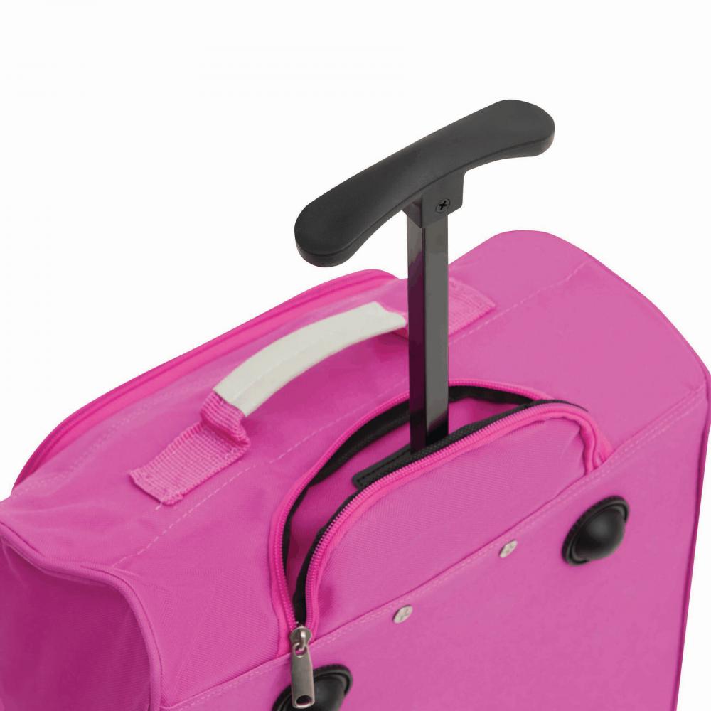 Багажник на колесиках ВЕНА: просторное основное отделение на молнии, карман на молнии спереди, система тележки может быть полностью спрятана в отдельном отделении на молнии, 2 ручки для переноски, 2 ножки сзади, легкие ходовые колеса, размер посадки подходит для авиакомпаний с низким бюджетом