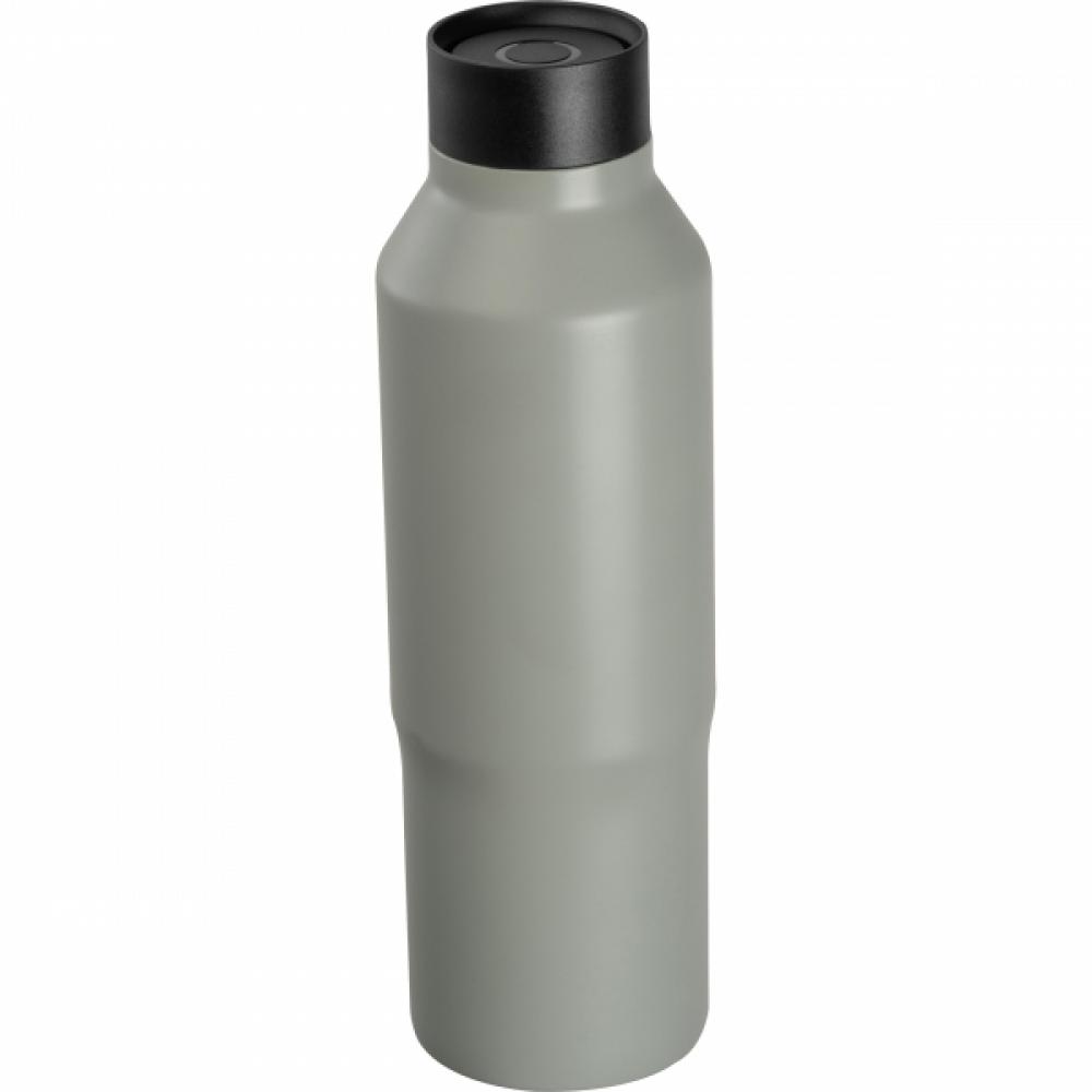 Большая двухслойная вакуумная бутылка для напитков, изготовленная из переработанной нержавеющей стали, с герметичной крышкой и объемом 600 мл. Поставляется в черной коробке.