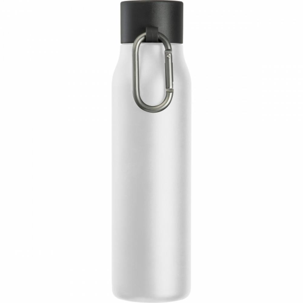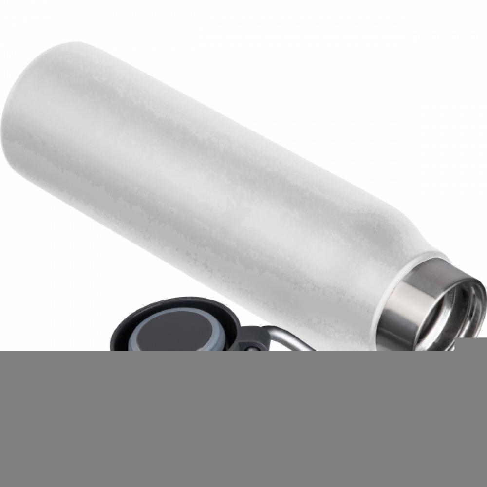 Двустенная вакуумная бутылка для напитков из нержавеющей стали объемом 600 мл, с герметичной завинчивающейся крышкой и карабином.