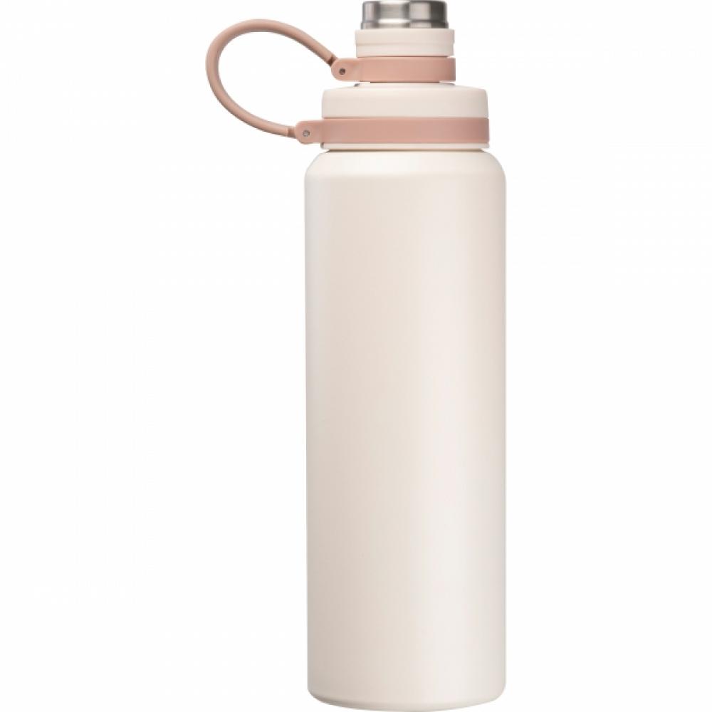 Двустенная вакуумная бутылка для напитков из нержавеющей стали объемом 800 мл. Герметичная крышка с винтовым механизмом и встроенным ремешком для переноски.