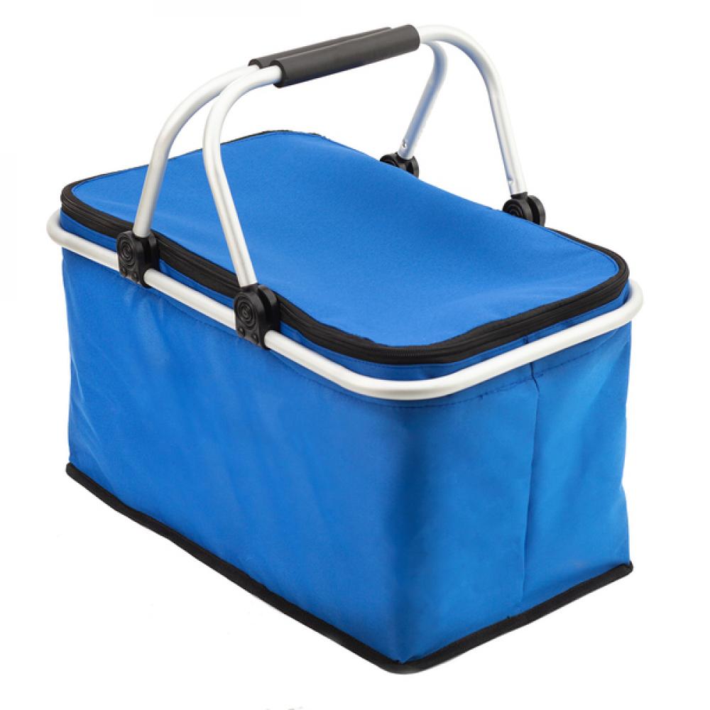 Корзина для пикника с изоляцией из полиэстера с алюминиевой рамой и ручкой из этиленвинилацетата. Он предлагает отличную теплоизоляцию благодаря алюминиевой фольге и пенопласту EPE внутри корзины. Емкость: 32 л. Максимальная нагрузка: 15 кг.