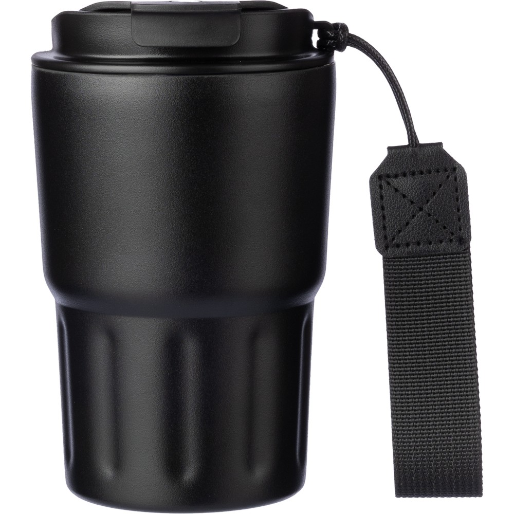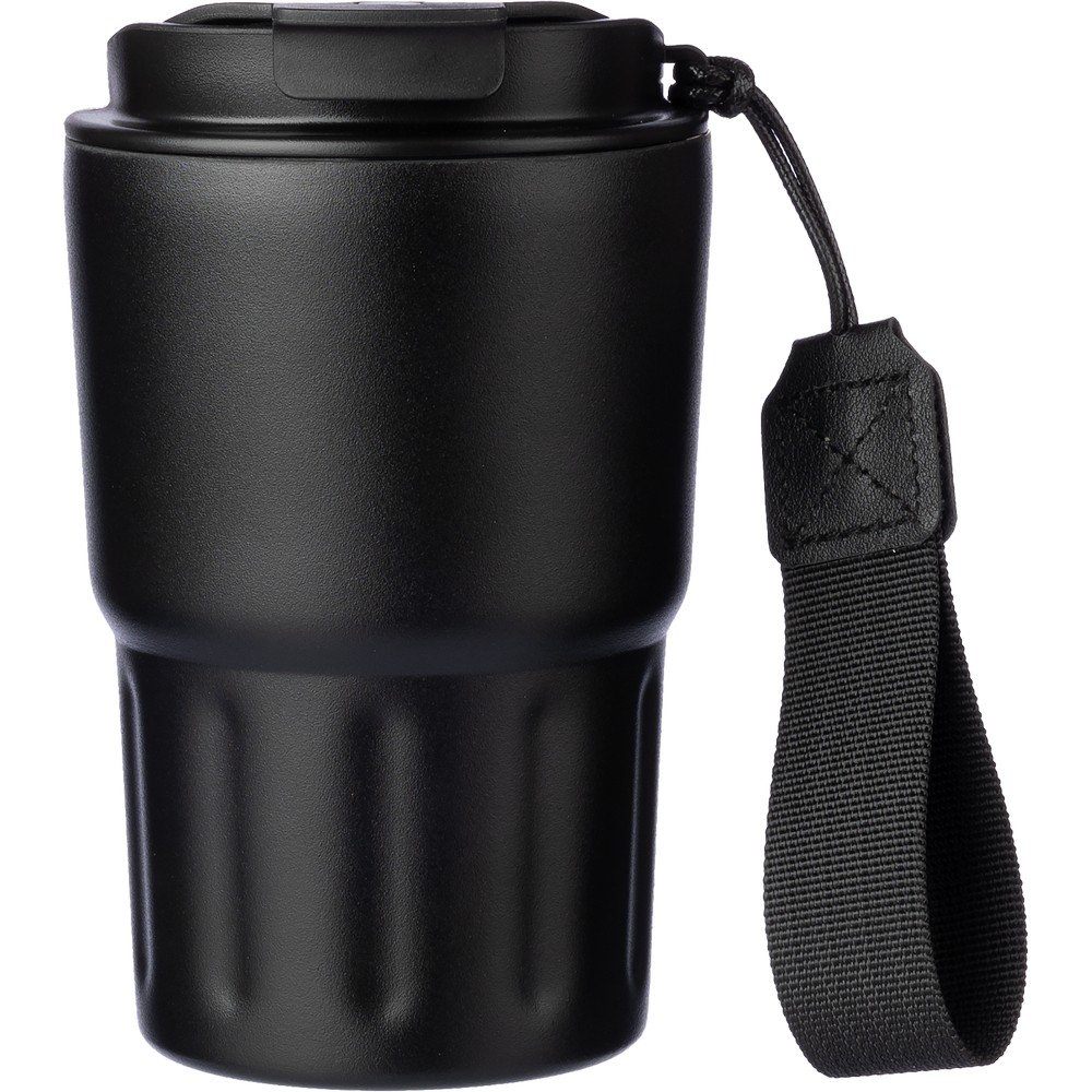 Термокружка объемом 320 мл имеет двойные стенки из нержавеющей стали с вакуумным утеплителем, который замедляет выход температуры наружу, работая как термос. Есть ремешок для удобной переноски, легко открывается одной рукой. Крышка из ПП имеет удобное отверстие для использования одной рукой. Хорошо сохраняет температуру горячих и холодных напитков.