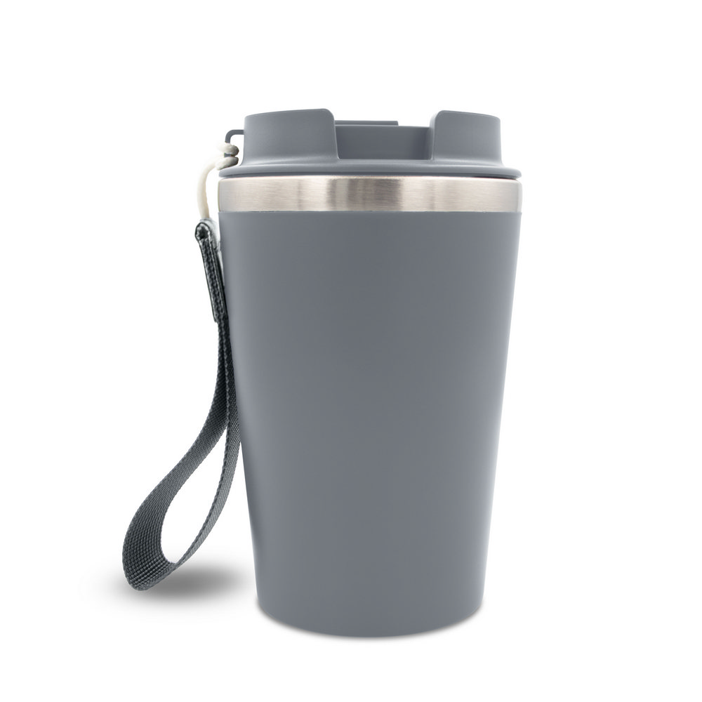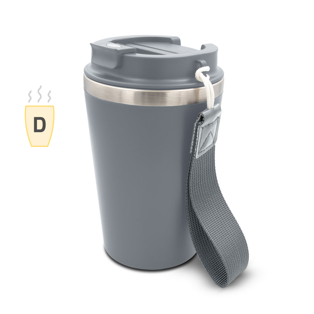 Термокружка 350 мл, изготовленная из двойной переработанной нержавеющей стали и ПП, с ремешком для удобства переноски, продукт изготовлен из переработанной нержавеющей стали и ПП, класс теплоизоляции: D + герметичность.