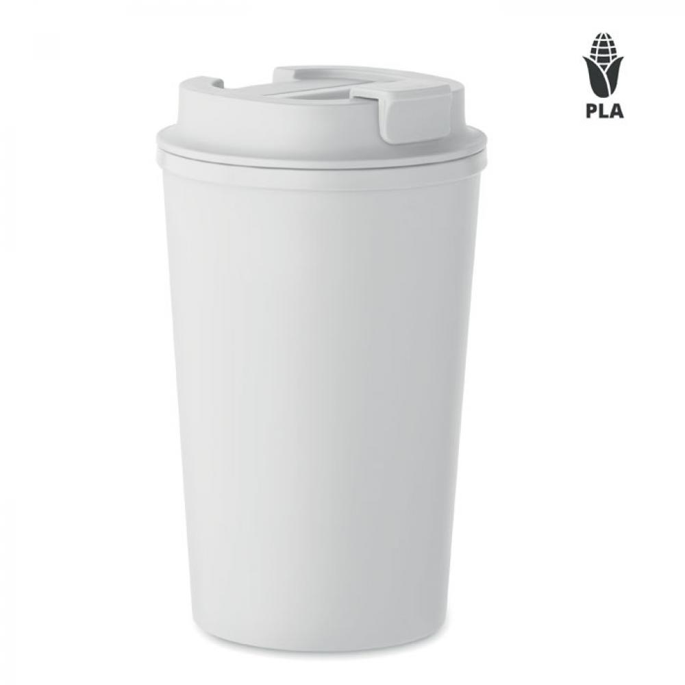 Термокружка с двойными стенками из 100% биоразлагаемого пластика на основе кукурузы с крышкой из полипропилена и термопластичной резины. Герметичная. Объем: 350 мл.