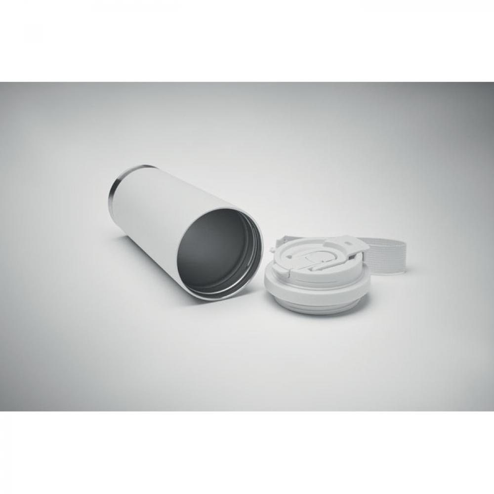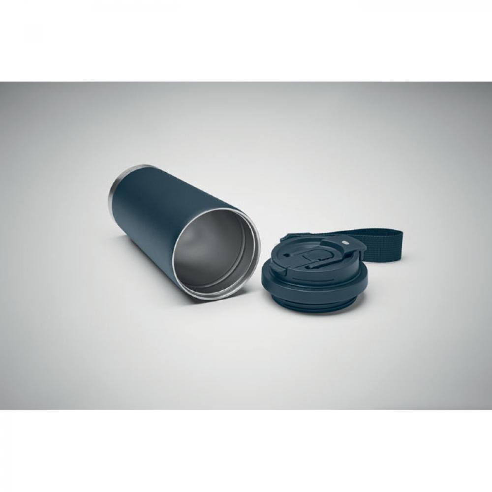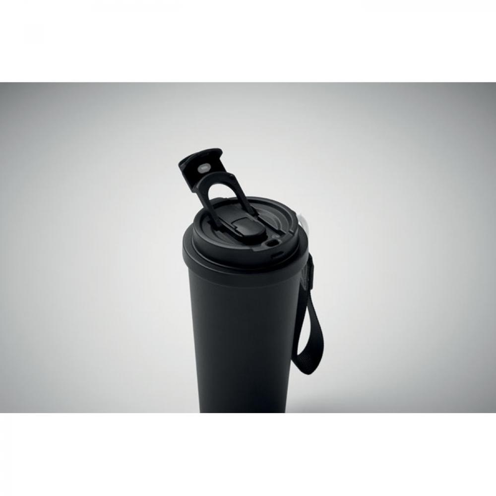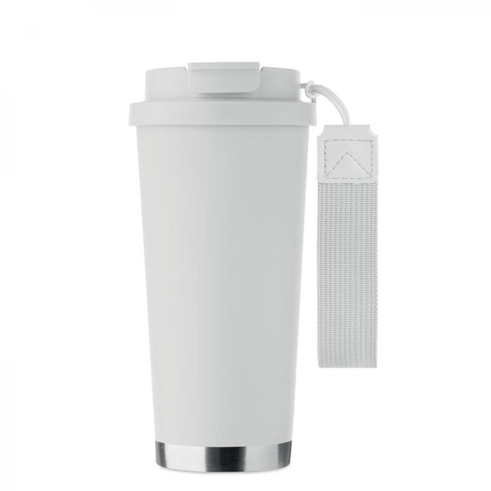 Термокружка с двойными стенками из 90% переработанной нержавеющей стали и 10% нержавеющей стали с пластиковой крышкой, трубочкой для питья и ремнем для переноски. Герметичный. Емкость: 500 мл.