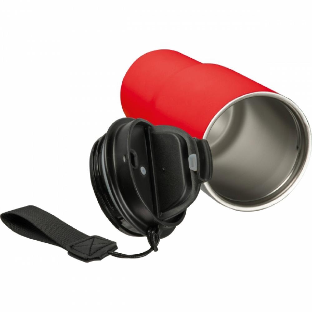 Элегантная двухслойная вакуумная кружка из нержавеющей стали объемом 550 мл с герметичной завинчивающейся крышкой и отверстием для питья, а также с удобным ремешком для переноски.