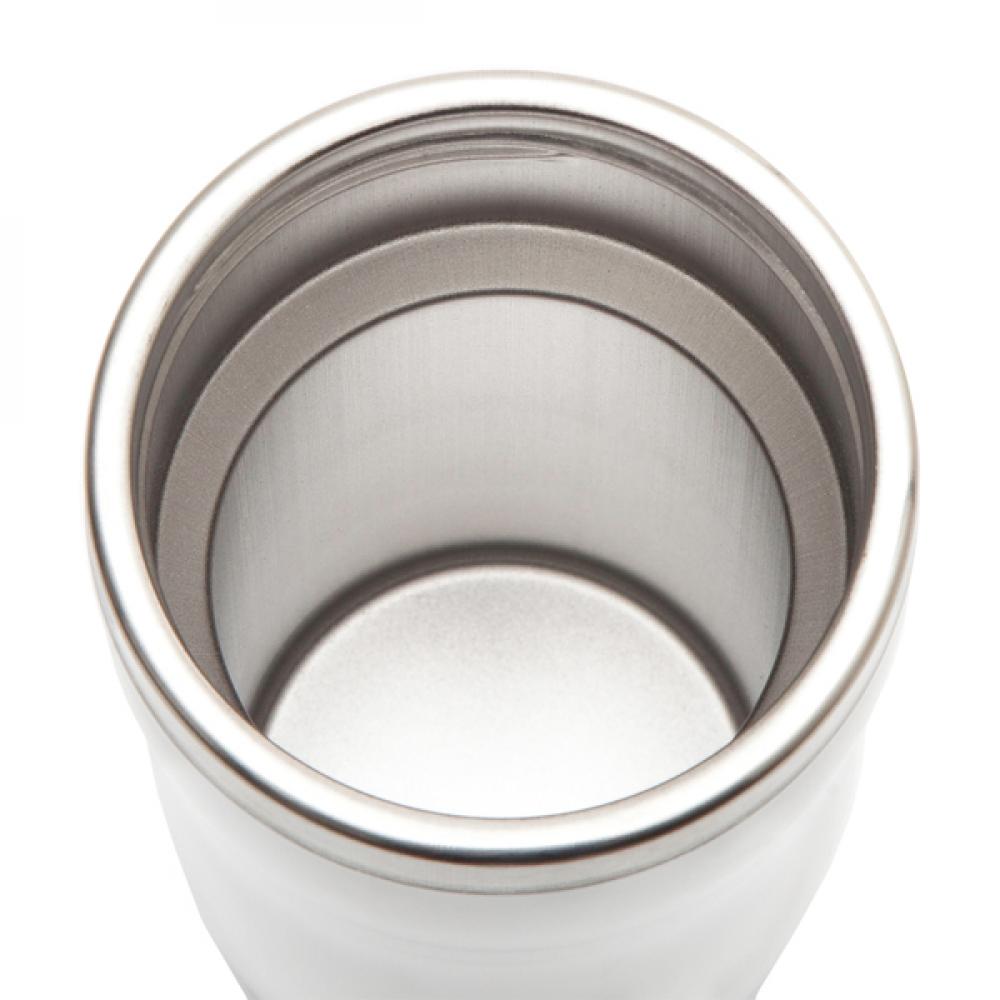 Изолированная кружка с двойными стенками 350 мл. Внутри модернизированная нержавеющая сталь 18/8, снаружи пластик. Откидная крышка. Стирать вручную. Он сохраняет температуру выше 40 градусов по Цельсию в течение 2,5 часов. Возможна печать XL.