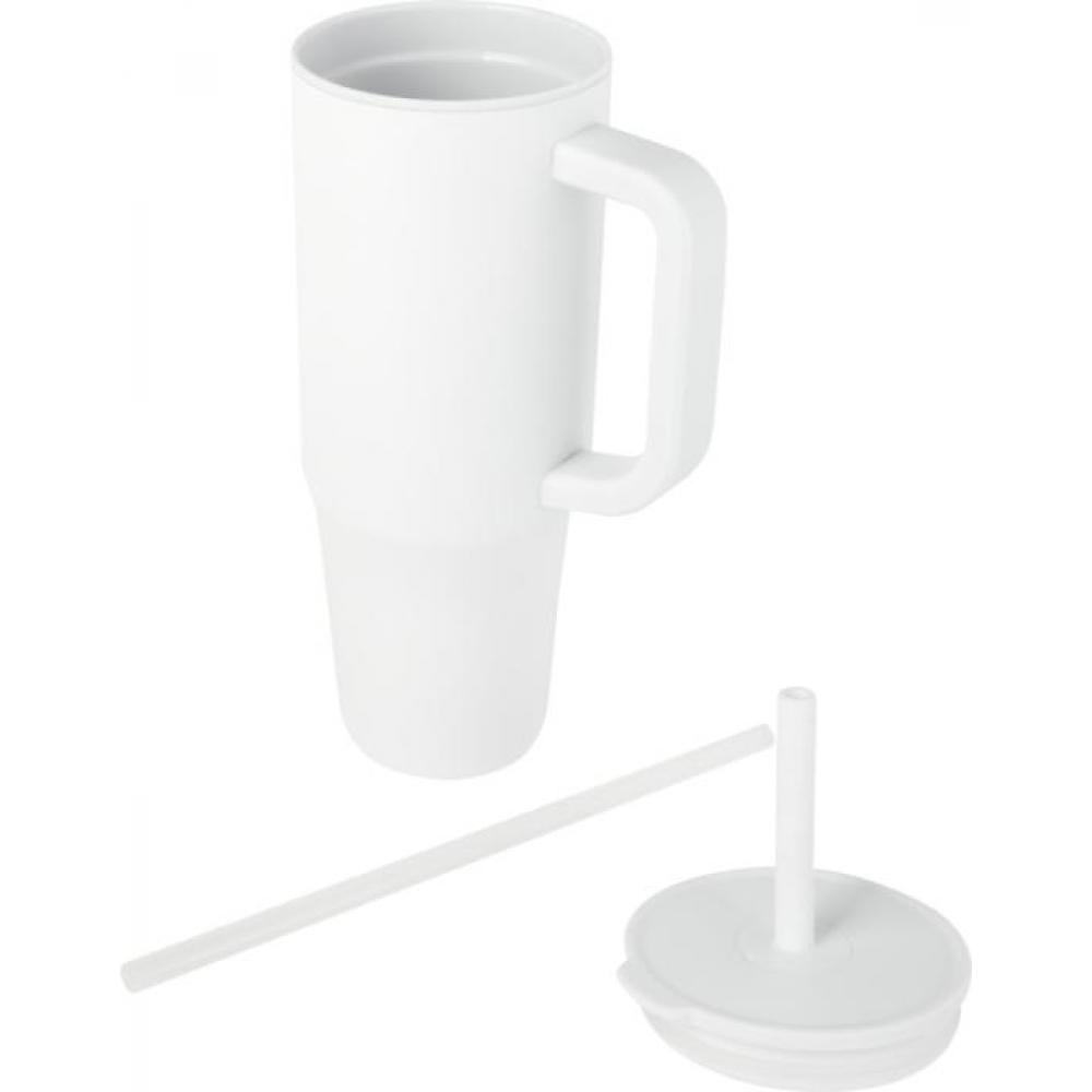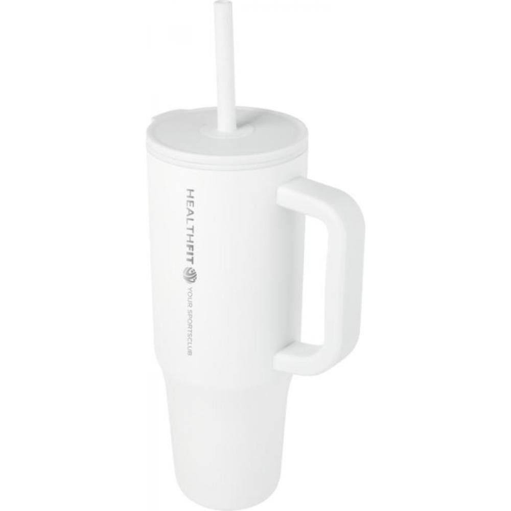 Стакан с прочной внешней стенкой, изготовленной из переработанной нержавеющей стали, сертифицированной RCS, и внутренней стенкой из пластика. В него встроена соломинка из пищевого силикона и запирающаяся крышка, защищающая от брызг, что обеспечивает приятное питье. Этот стакан также подходит для горячих напитков, но не рекомендуется пить их через соломинку. Чтобы напиток остыл, перед употреблением снимите крышку. Объем: 900 мл. Только ручная стирка. 90% переработанной нержавеющей стали и 10% полипропиленового пластика.