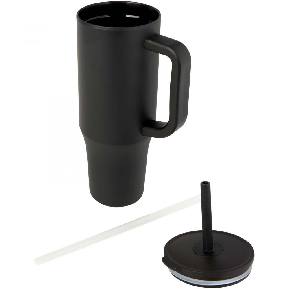 Стакан с прочной внешней стенкой, изготовленной из переработанной нержавеющей стали, сертифицированной RCS, и внутренней стенкой из пластика. В него встроена соломинка из пищевого силикона и запирающаяся крышка, защищающая от брызг, что обеспечивает приятное питье. Этот стакан также подходит для горячих напитков, но не рекомендуется пить их через соломинку. Чтобы напиток остыл, перед употреблением снимите крышку. Объем: 900 мл. Только ручная стирка. 90% переработанной нержавеющей стали и 10% полипропиленового пластика.