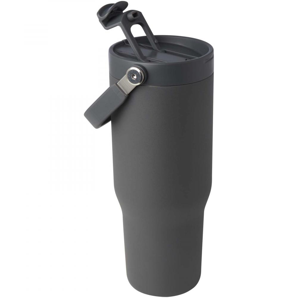 Термокружка Bronx объемом 900 мл изготовлена из нержавеющей стали с сертификатом RCS и имеет двойные стенки с вакуумной конструкцией и медной изоляцией. Крышка имеет двойную функцию: складная трубочка для удобного питья и откидное отверстие с удобной складной ручкой для легкой переноски. Подходит для большинства автомобильных подстаканников. Упакована в подарочную коробку из переработанного картона.