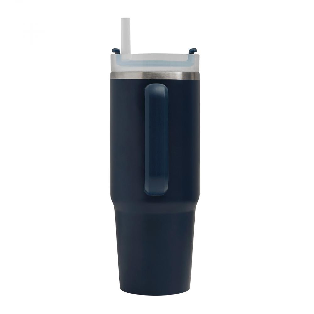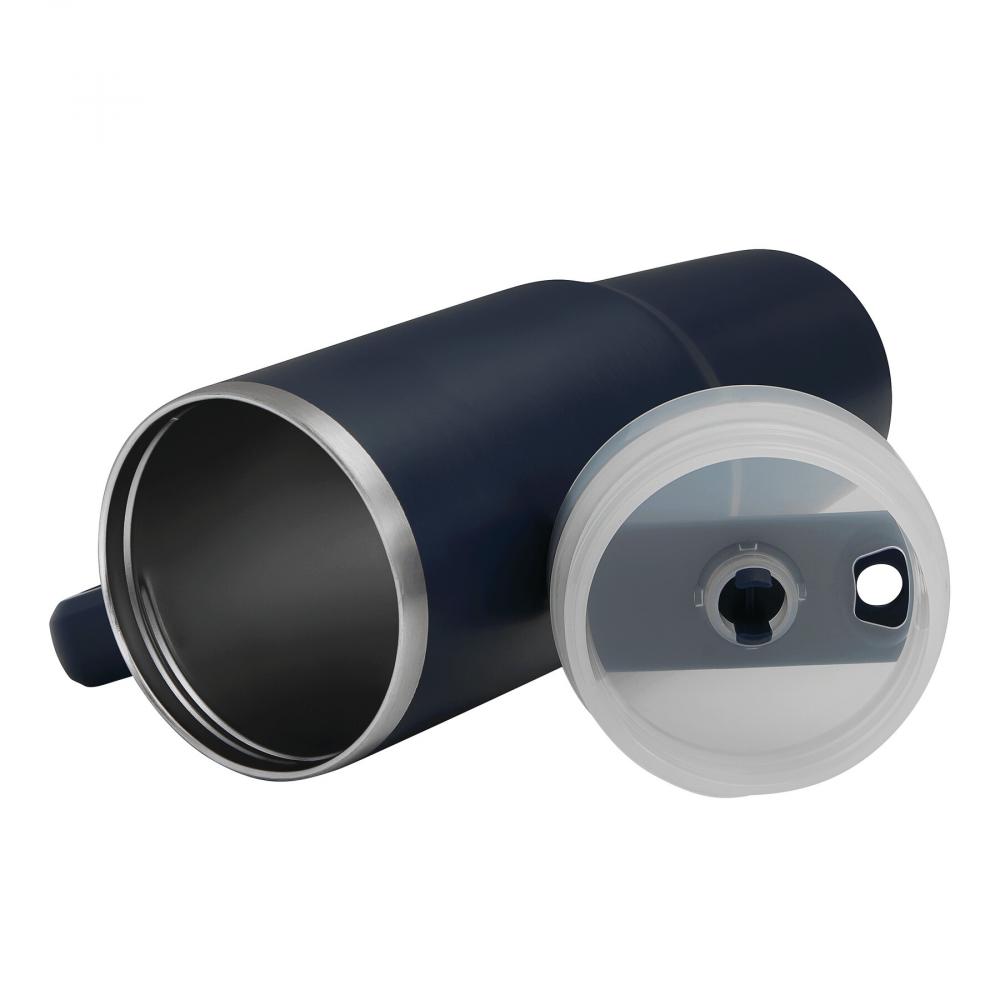 Термокружка DRINK DELUXE, двойные стенки: внутри и снаружи из нержавеющей стали, с практичной ручкой, полупрозрачная пластиковая крышка с надежной завинчивающейся крышкой, силиконовое уплотнительное кольцо, отверстие для питья с вращающейся крышкой и прозрачной соломинкой, объем примерно 900 мл