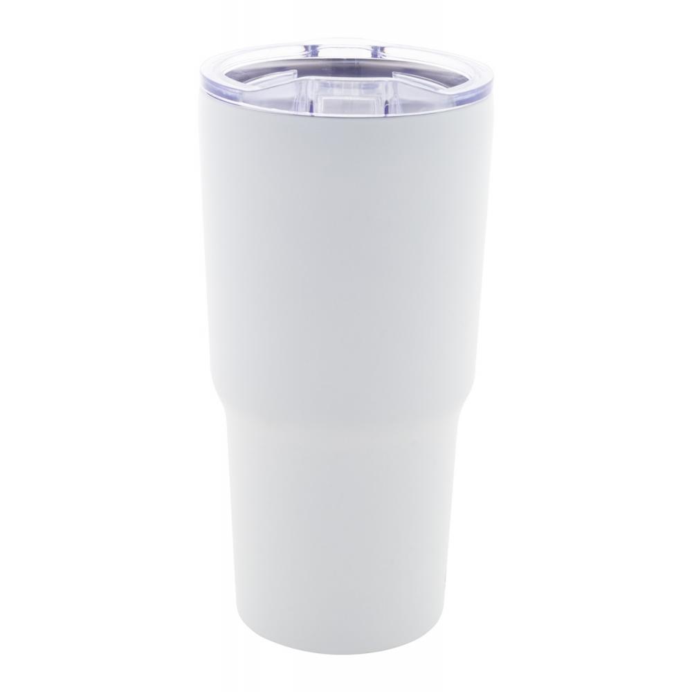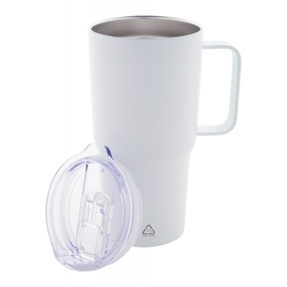 Двойная стенка, переработанный нержавеющий стальной термокружка с вакуумным изоляцией и пластиковой крышкой для питья. 600 мл.