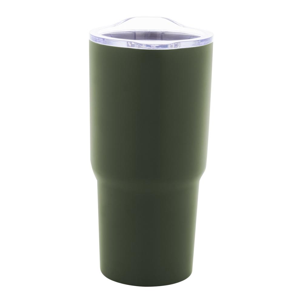 Двойная стенка, переработанный нержавеющий стальной термокружка с вакуумным изоляцией и пластиковой крышкой для питья. 600 мл.
