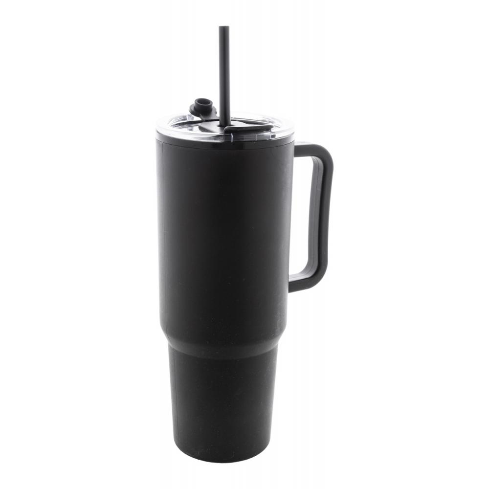 Двойная стенка, изоляционная термокружка из пластика PP с крышкой для питья и соломкой. 1100 мл.