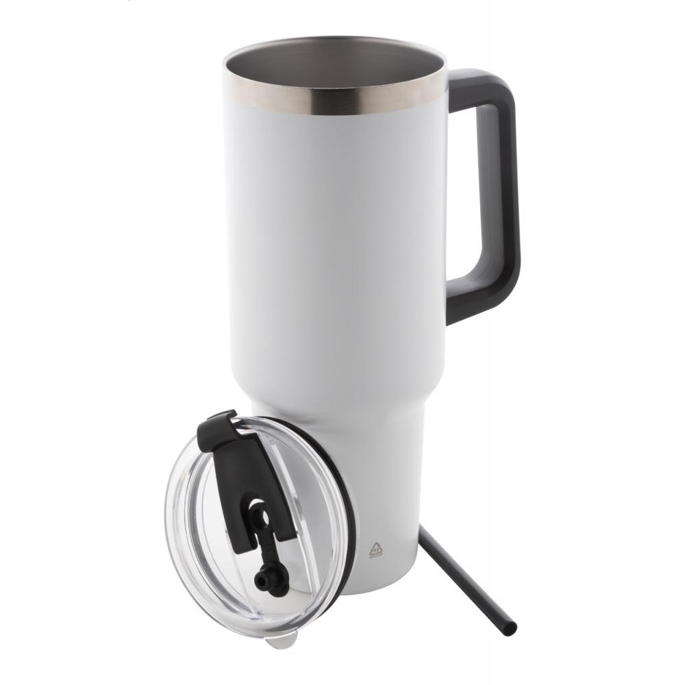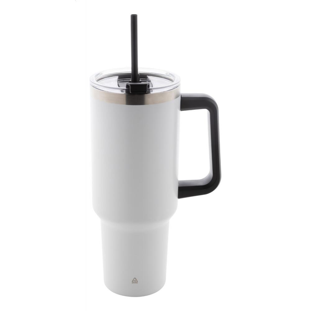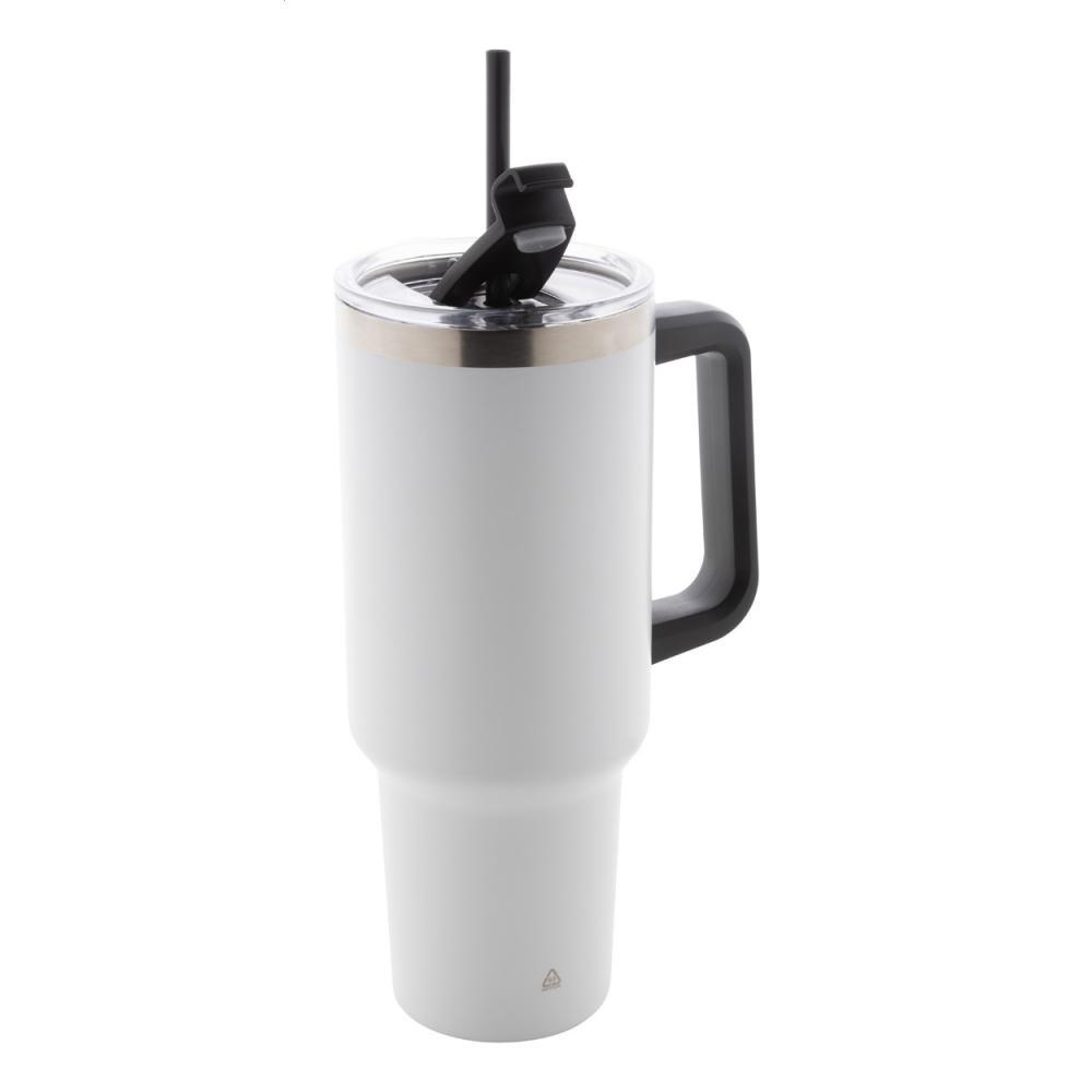 Двойная стенка, переработанный нержавеющий стальной термокружка с вакуумным изоляцией и крышкой для питья из ПС и соломкой из ПП. 1200 мл.