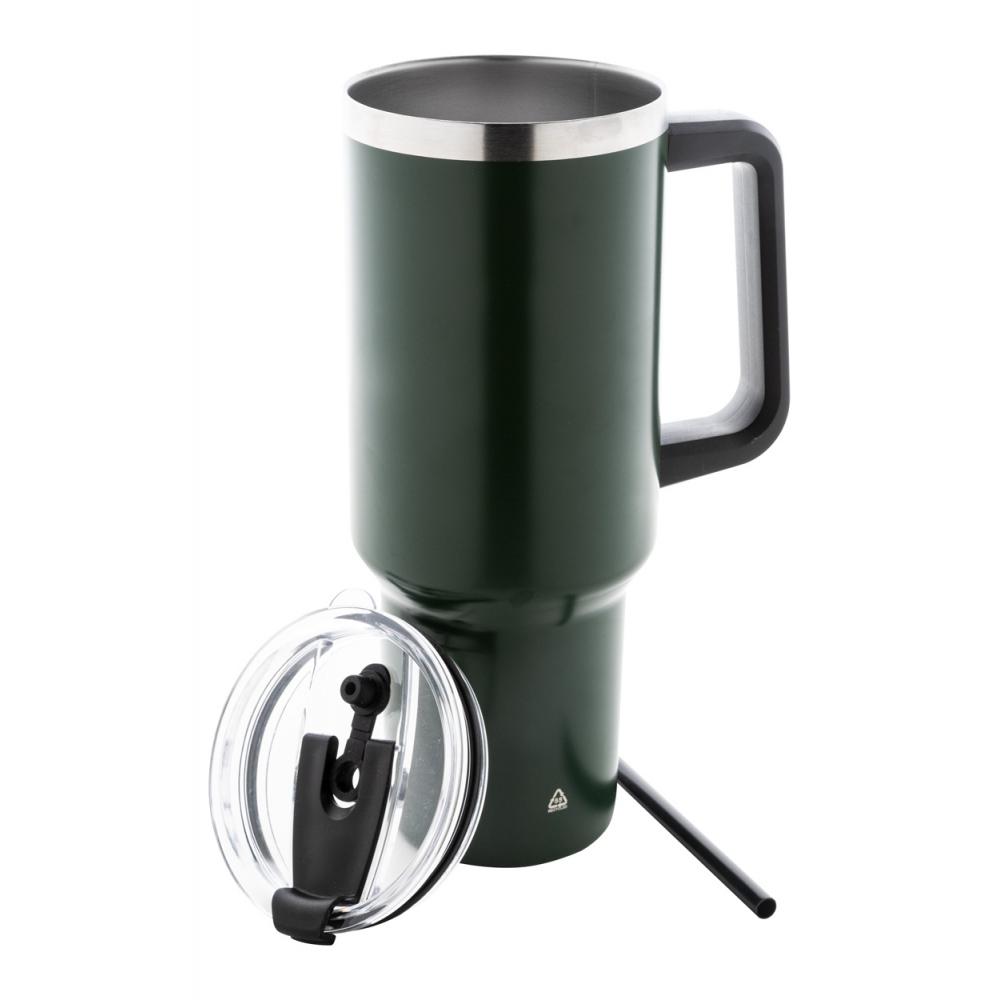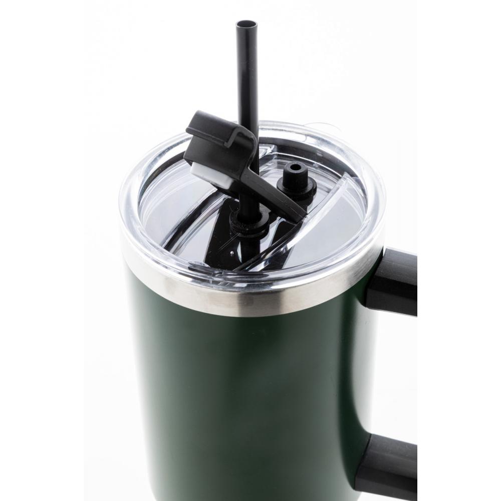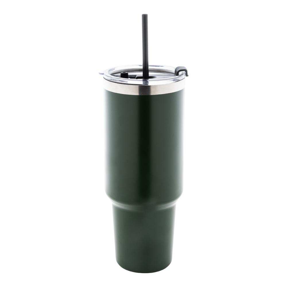 Двойная стенка, переработанный нержавеющий стальной термокружка с вакуумным изоляцией и крышкой для питья из ПС и соломкой из ПП. 1200 мл.