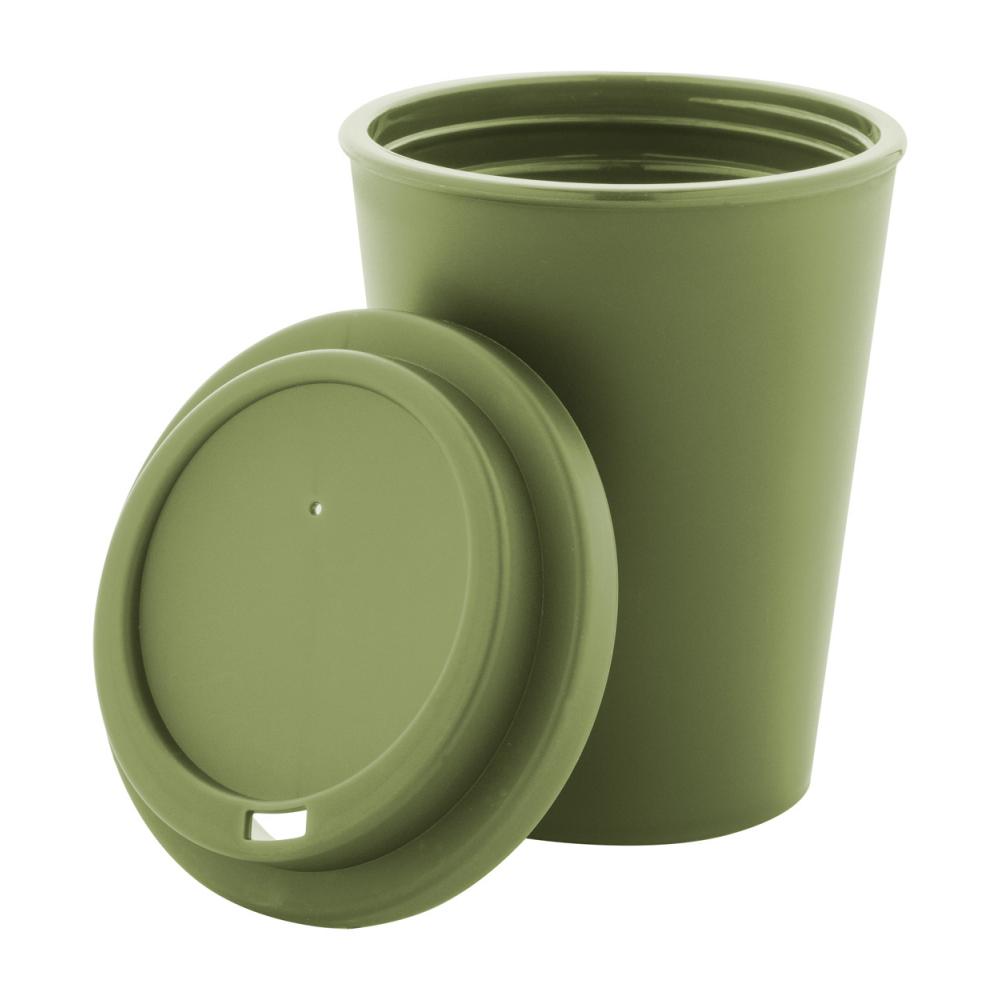 Двухстенный термокружка из пластика PP с изоляцией и крышкой для питья. 300 мл.