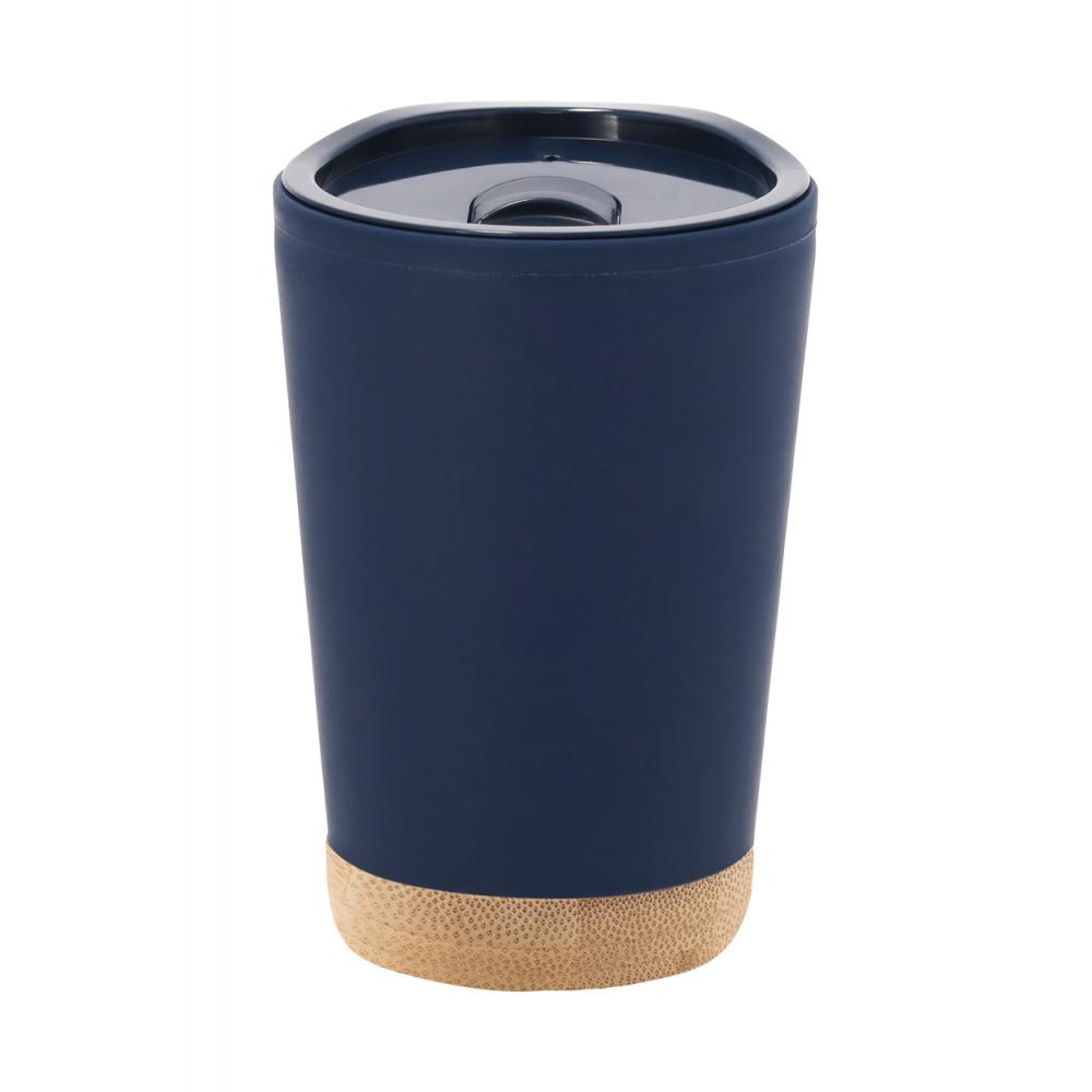 Двухстенчатая термокружка из пластика PP с изоляцией, с крышкой для питья и основанием из бамбука, 260 мл.
