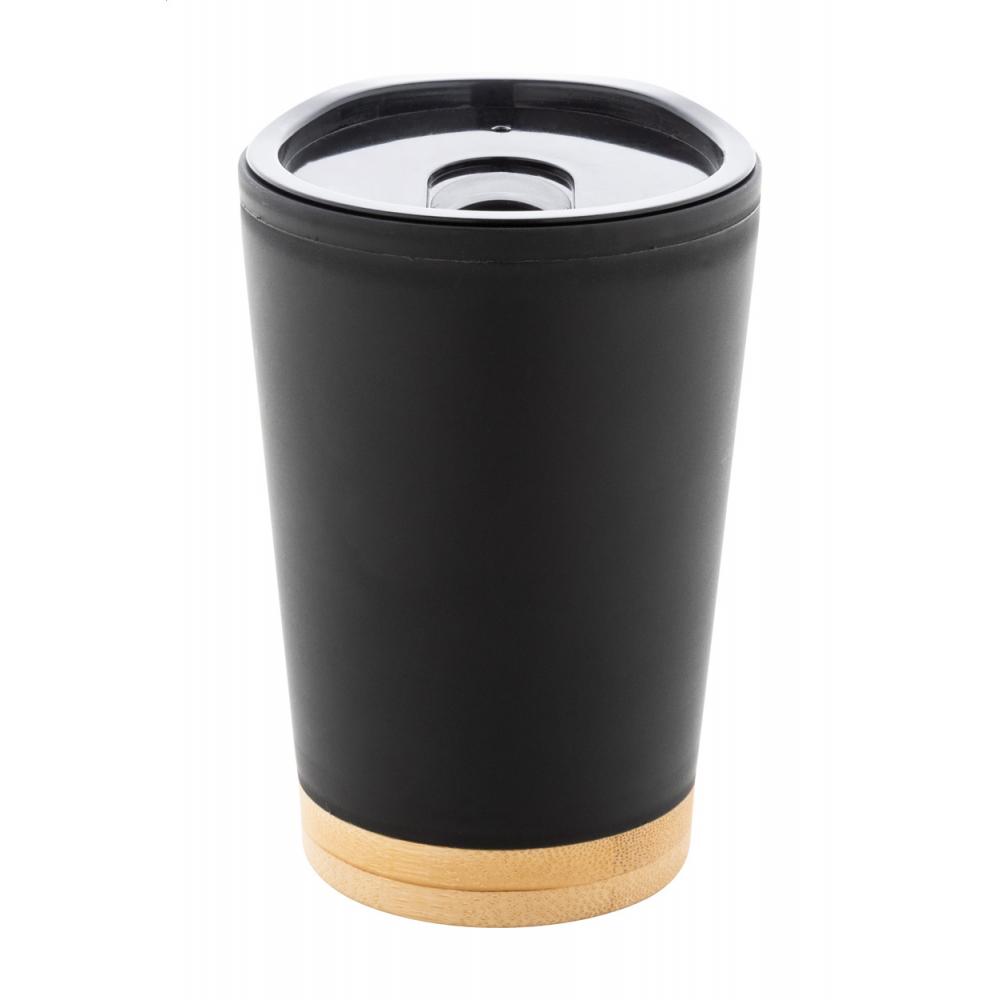 Двухстенчатая термокружка из пластика PP с изоляцией, с крышкой для питья и основанием из бамбука, 260 мл.
