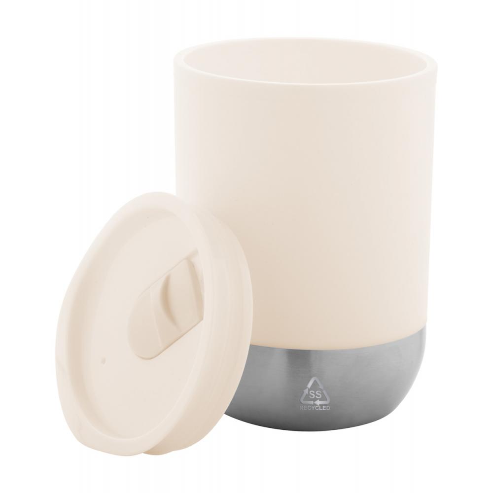 Двухстенный термокружка из пластика PP с изолирующим слоем из переработанной нержавеющей стали и крышкой для питья. 300 мл.